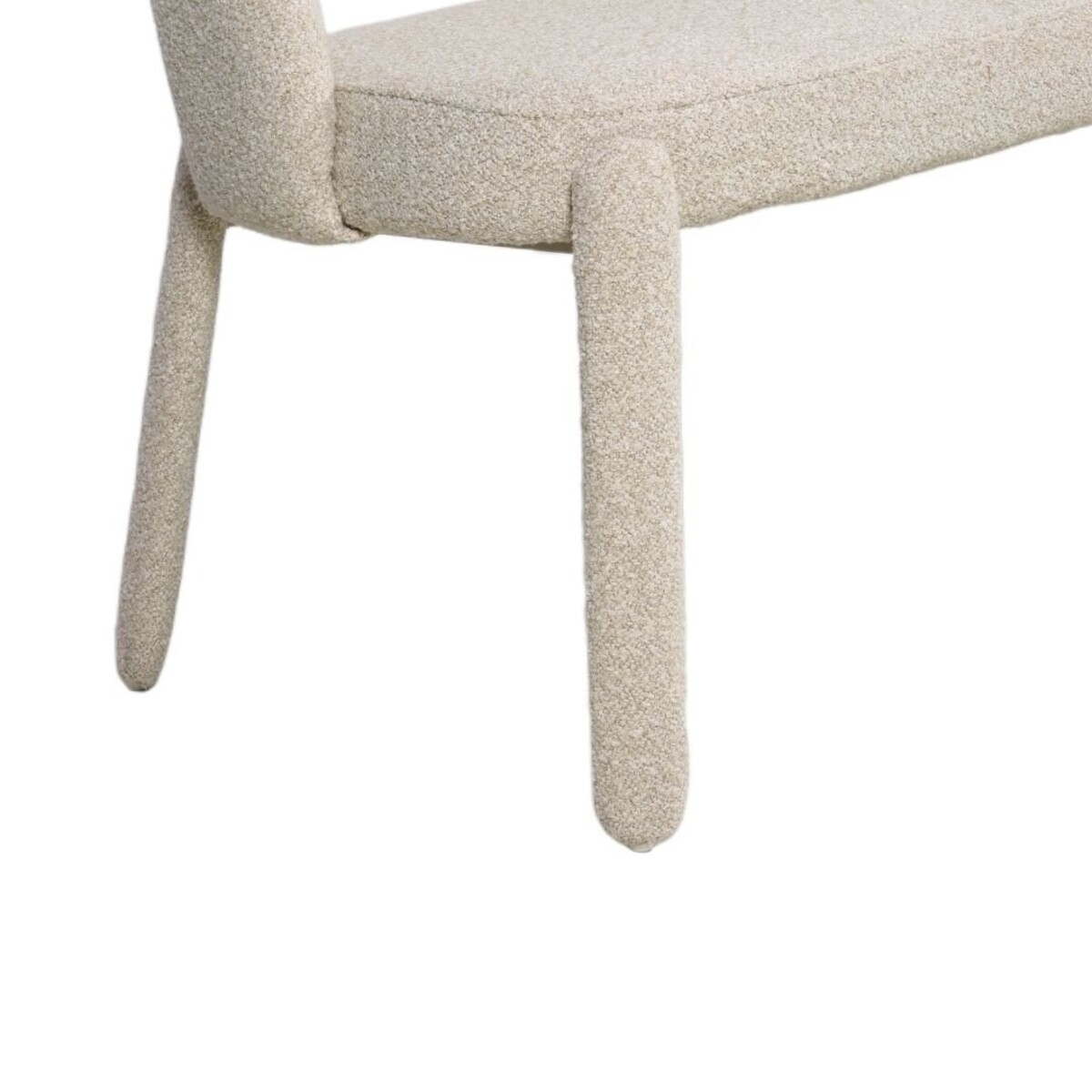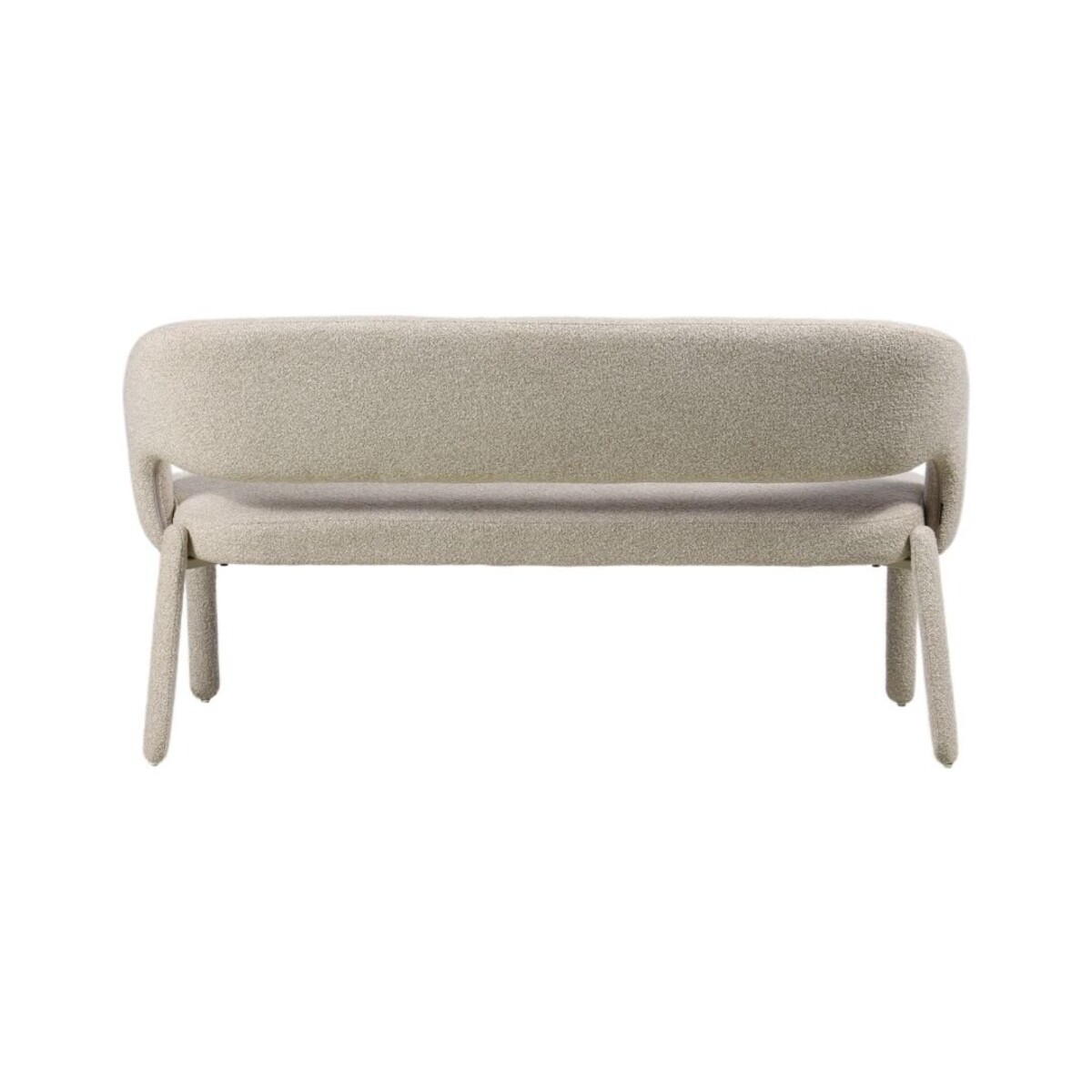 Le revêtement du banc est en tissu bouclé de qualité supérieure, composé de fils mélangés pour une texture riche et un aspect contemporain. L’ouverture sous le dossier limite l’accumulation de saletés sur l’assise, tandis que les pieds habillés de tissu apportent une touche de luxe supplémentaire. La structure robuste assure stabilité et confort au fil du temps.