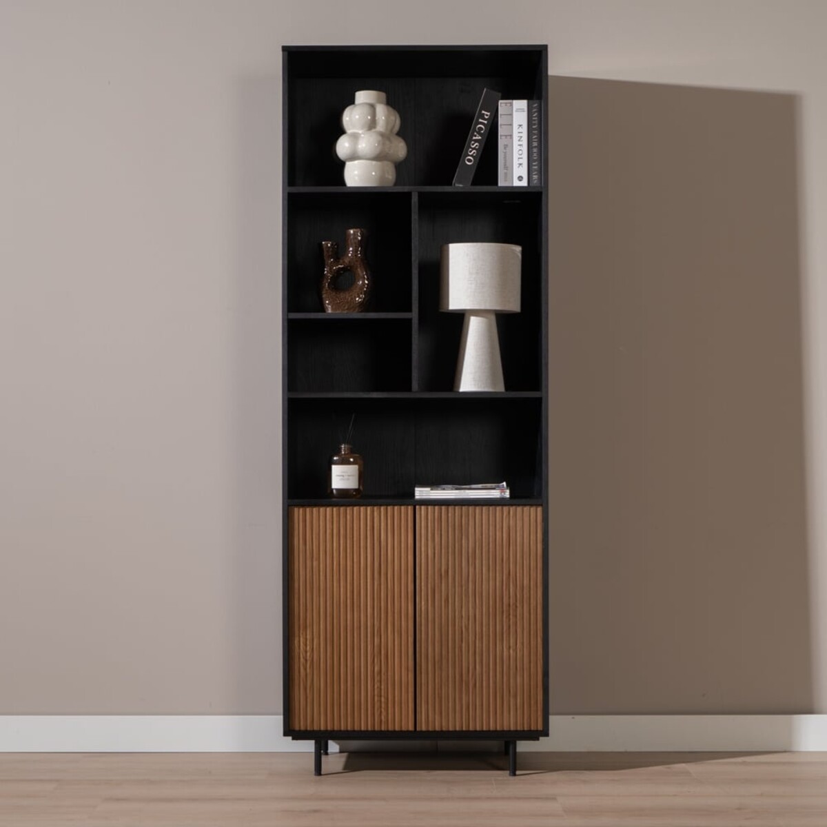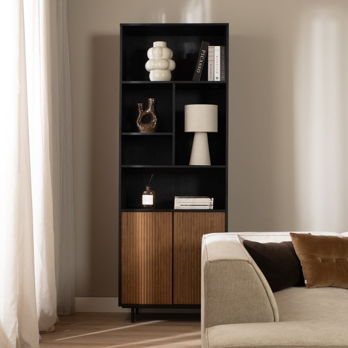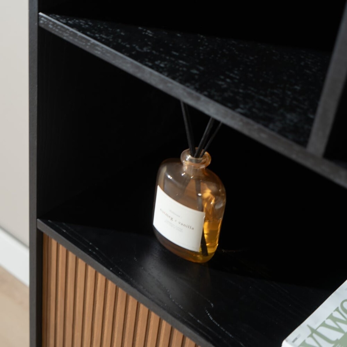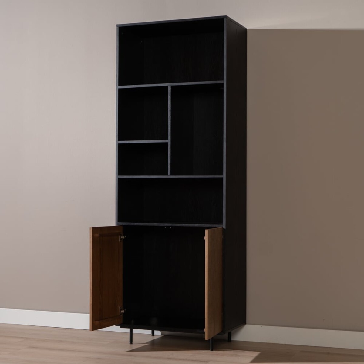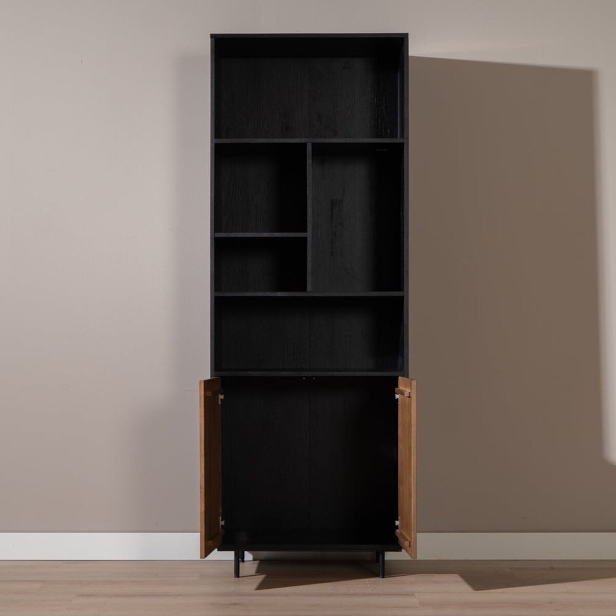Bibliothèque de rangement Bradley noir / chêne rustique 80x220 cm
