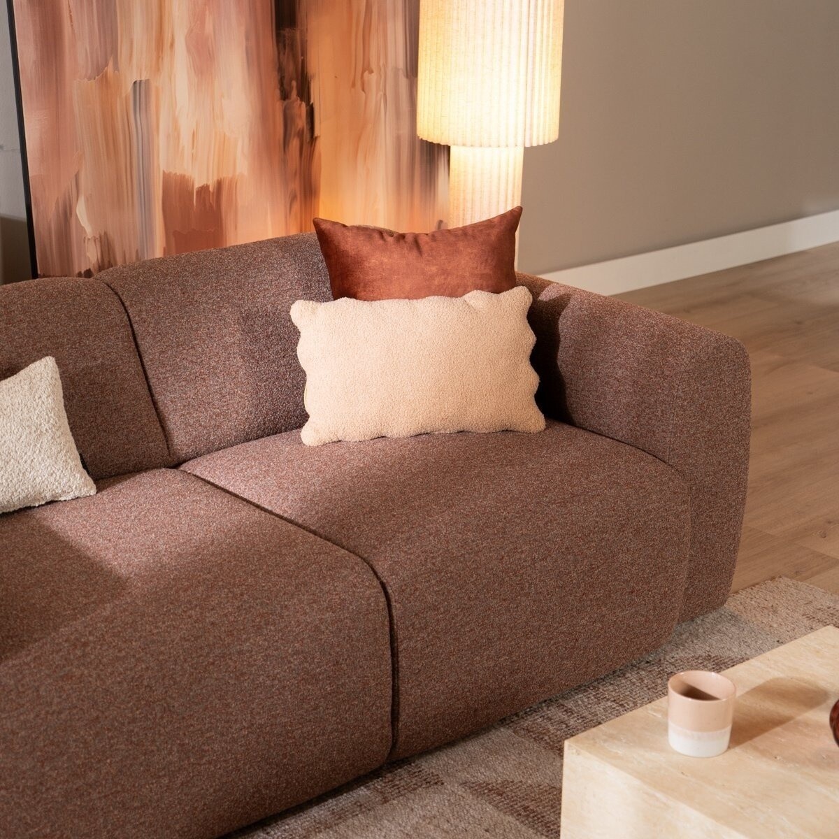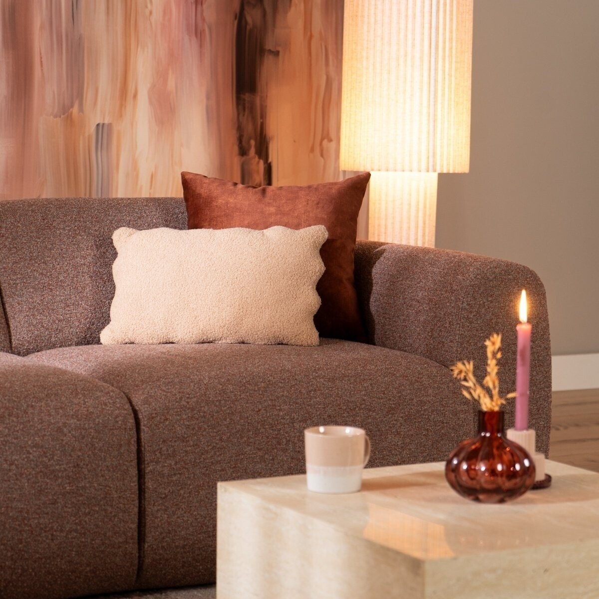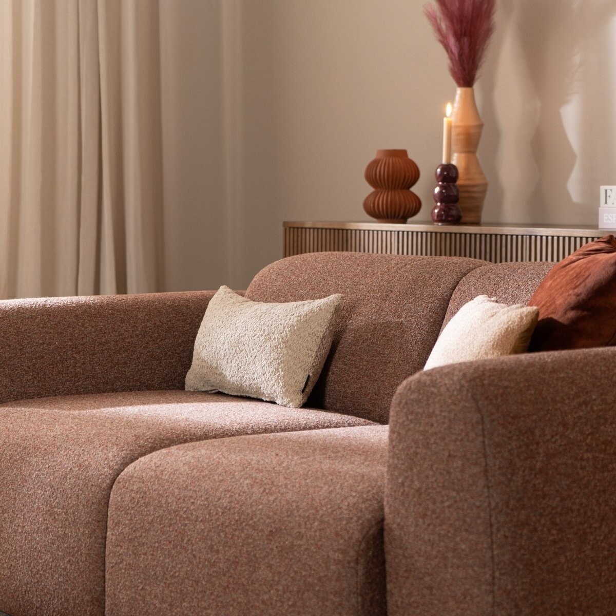 Ce canapé Maine est revêtu d’un tissu 100 % polyester. Le polyester est une matière très résistante avec un score Martindale de 38 000, ce qui rend le canapé résistant à l’usure et aux déchirures. Le tissu bouclé, avec sa texture en bouclettes, confère une atmosphère chaleureuse et élégante à votre intérieur.