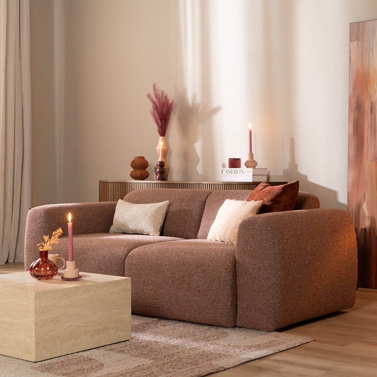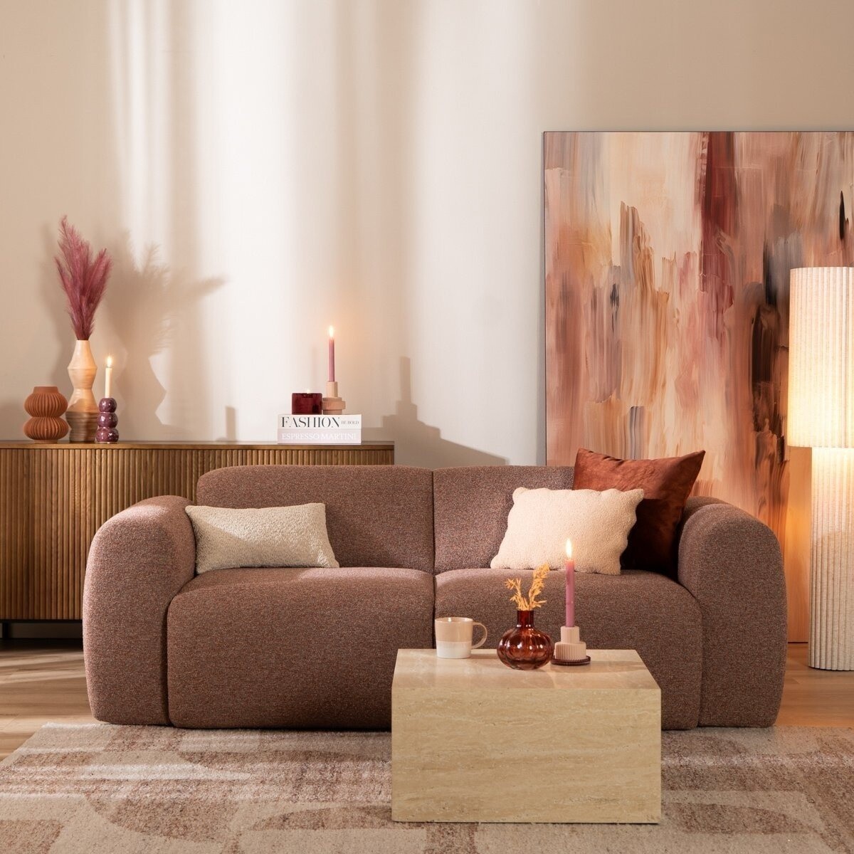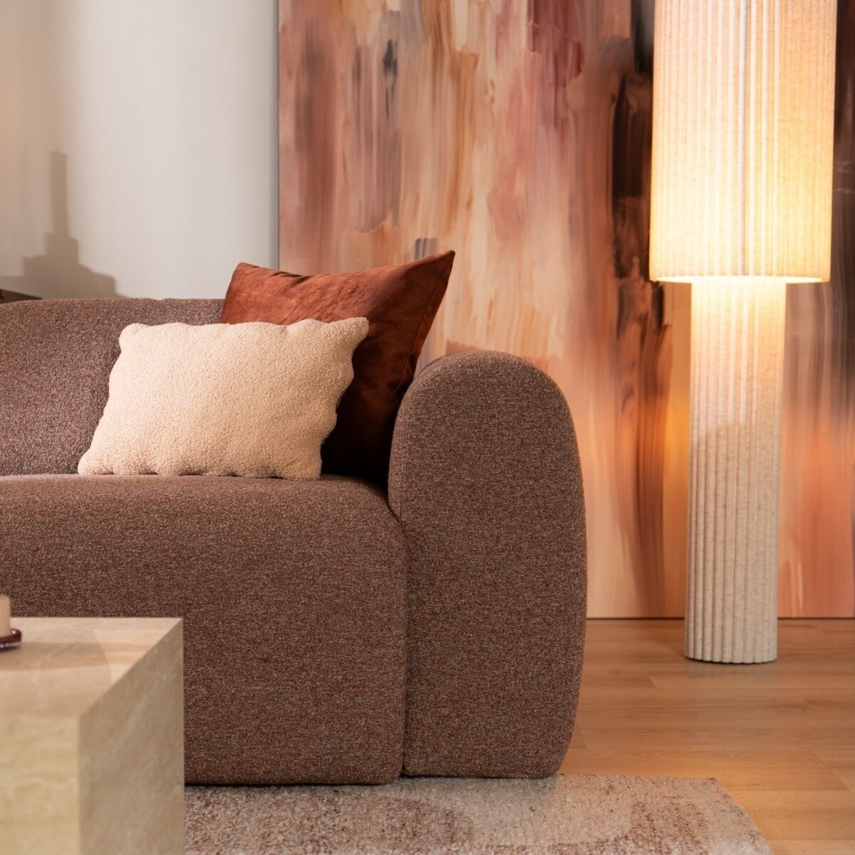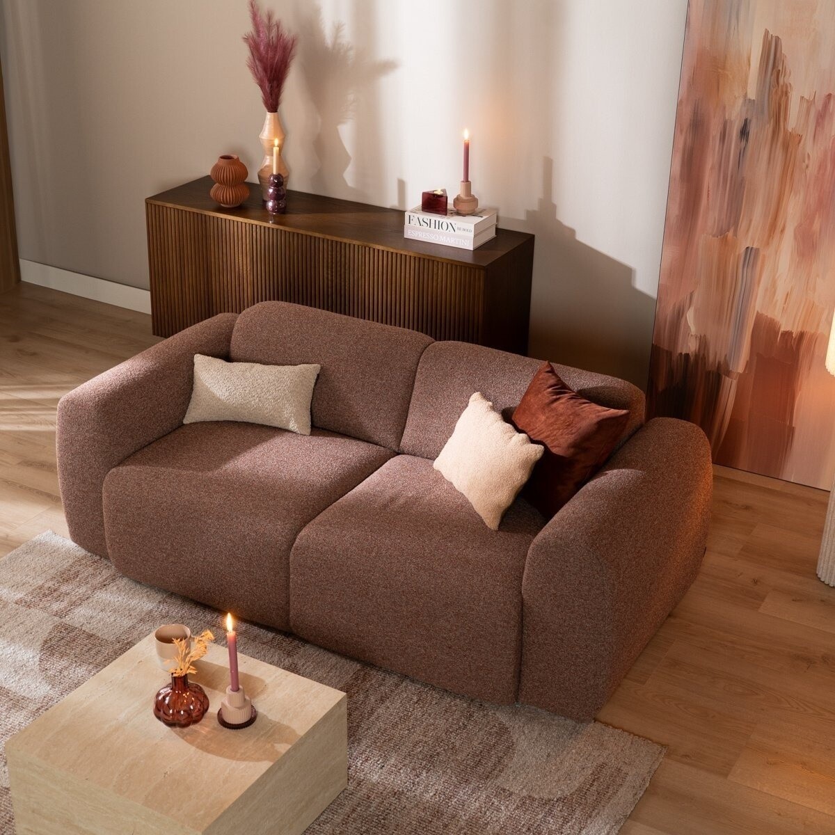 Ce canapé Maine est revêtu d’un tissu 100 % polyester. Le polyester est une matière très résistante avec un score Martindale de 38 000, ce qui rend le canapé résistant à l’usure et aux déchirures. Le tissu bouclé, avec sa texture en bouclettes, confère une atmosphère chaleureuse et élégante à votre intérieur.