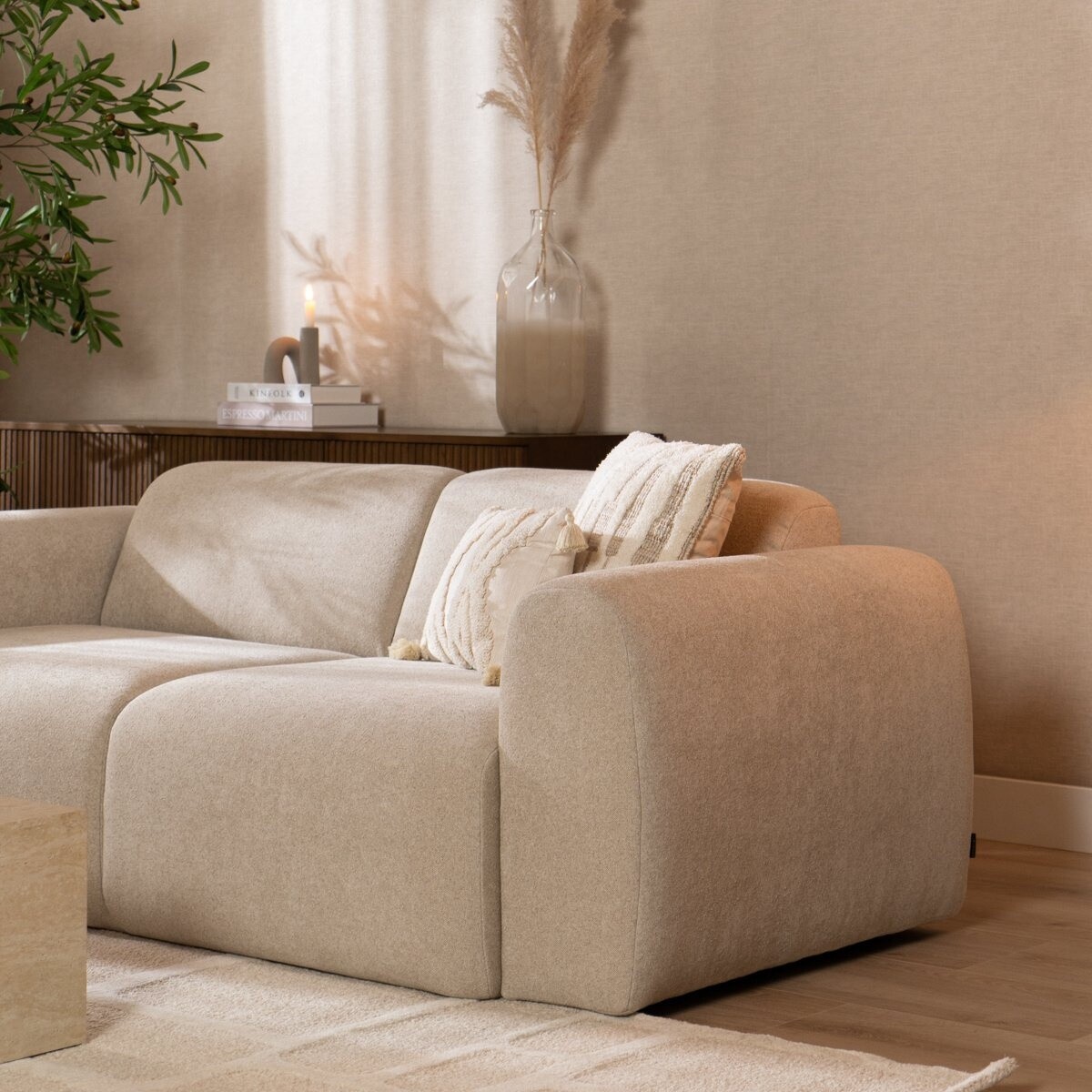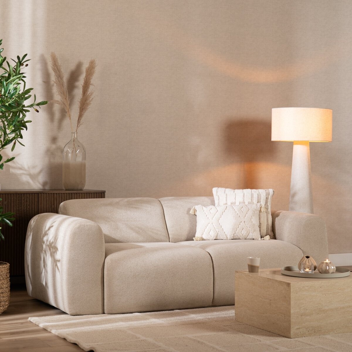 Les accoudoirs doux et arrondis invitent à la détente, tandis que l’assise entièrement tapissée jusqu’au sol offre un aspect épuré et luxueux. Le canapé possède un dossier bas et une assise basse, convenant parfaitement à 2 à 3 personnes.