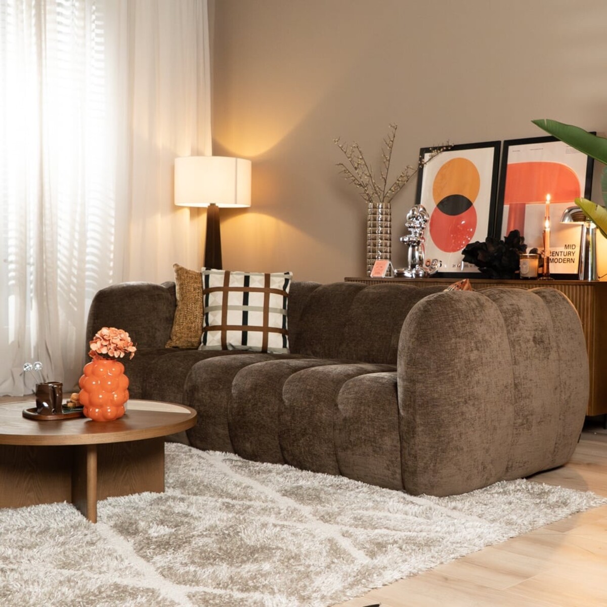 Le canapé 3 places Luca a été conçu avec un souci du confort et de la durabilité. La structure solide est composée de panneaux de particules, de lattes en bois et de sangles élastiques, complétée par des ressorts Nosag pour un soutien durable. L’assise contient plusieurs couches de mousse HR (mousse de haute résilience), offrant un confort rebondi sans être trop mou. Tu t’assois de manière stable, avec un bon soutien du dos et de l’assise, ce qui rend ce modèle adapté aussi bien aux moments de détente qu’à une assise active. Les côtés sont entièrement rembourrés jusqu’au sol, ce qui confère au canapé un aspect luxueux et robuste.