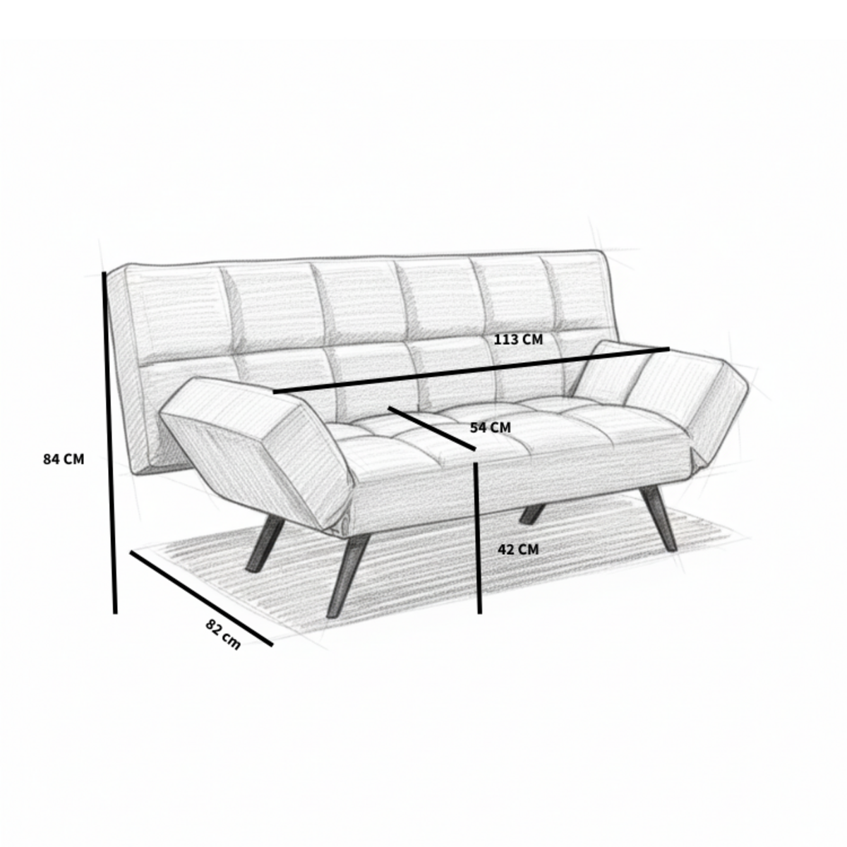 En tant que canapé: hauteur d’assise: 42 cm, profondeur d’assise: 54 cm, largeur d’assise: 113 cm