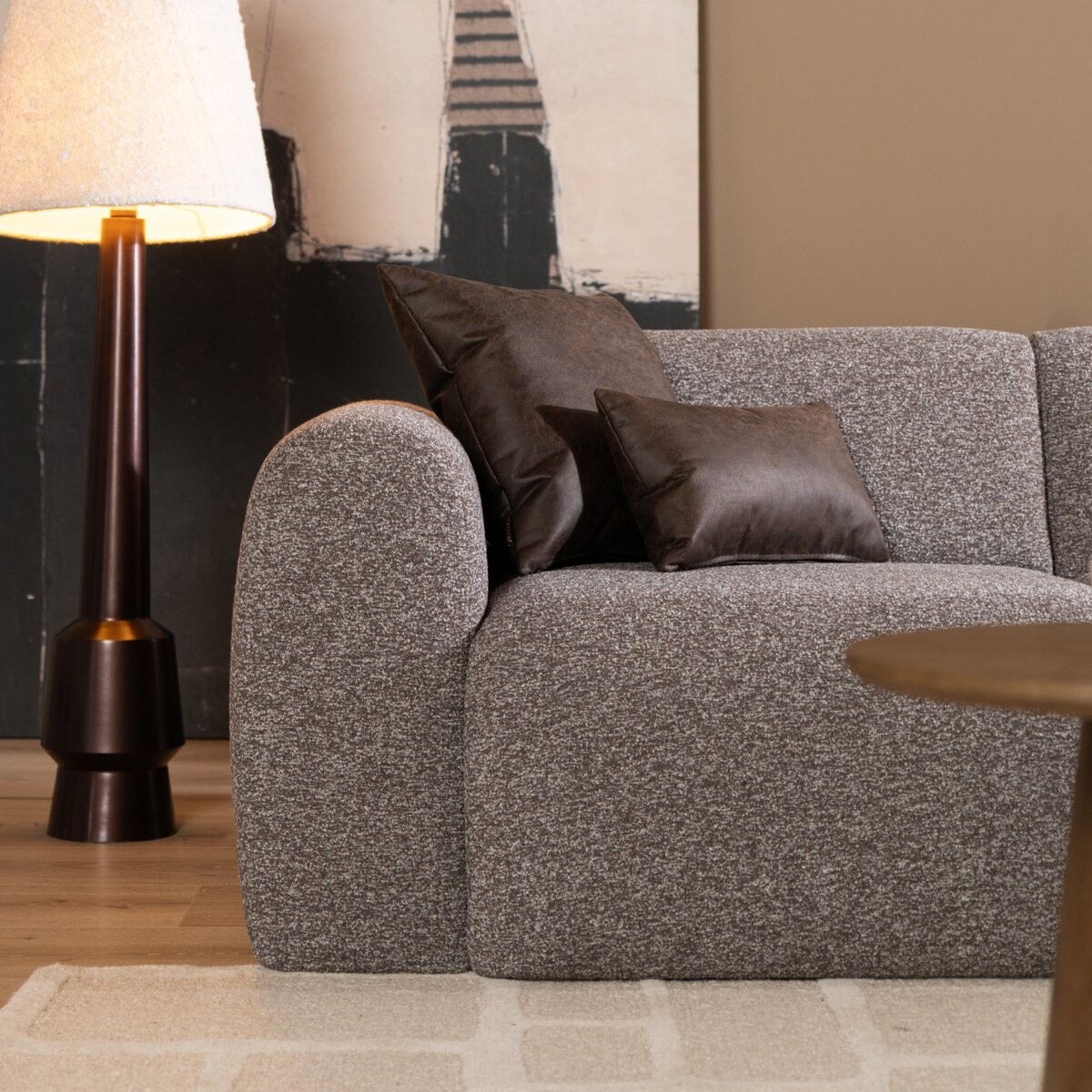 Canapé d'angle droit Maine en tissu bouclé brun/gris
