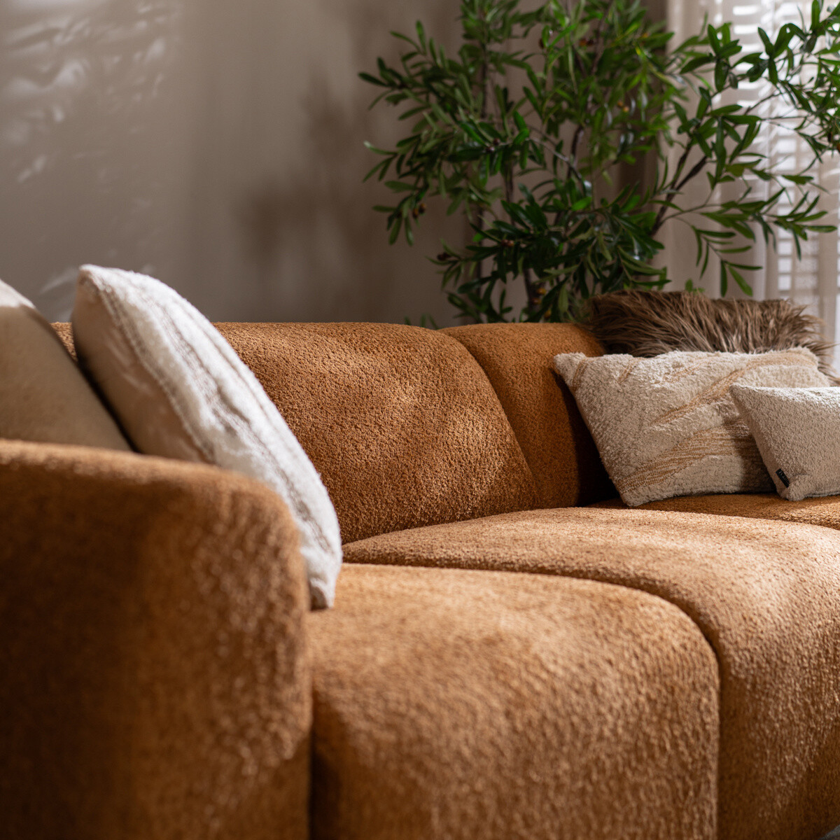 Le canapé d’angle Maine est le parfait équilibre entre style et confort, conçu dans un magnifique tissu bouclé. Grâce à son design polyvalent, le Maine s’intègre facilement dans différents styles d’intérieur. Les accoudoirs doux et arrondis donnent au canapé une allure accueillante. Tandis que les assises larges et entièrement tapissées jusqu’au sol offrent une finition luxueuse et haut de gamme. Ces détails bien pensés rendent le Maine incontournable dans votre salon.