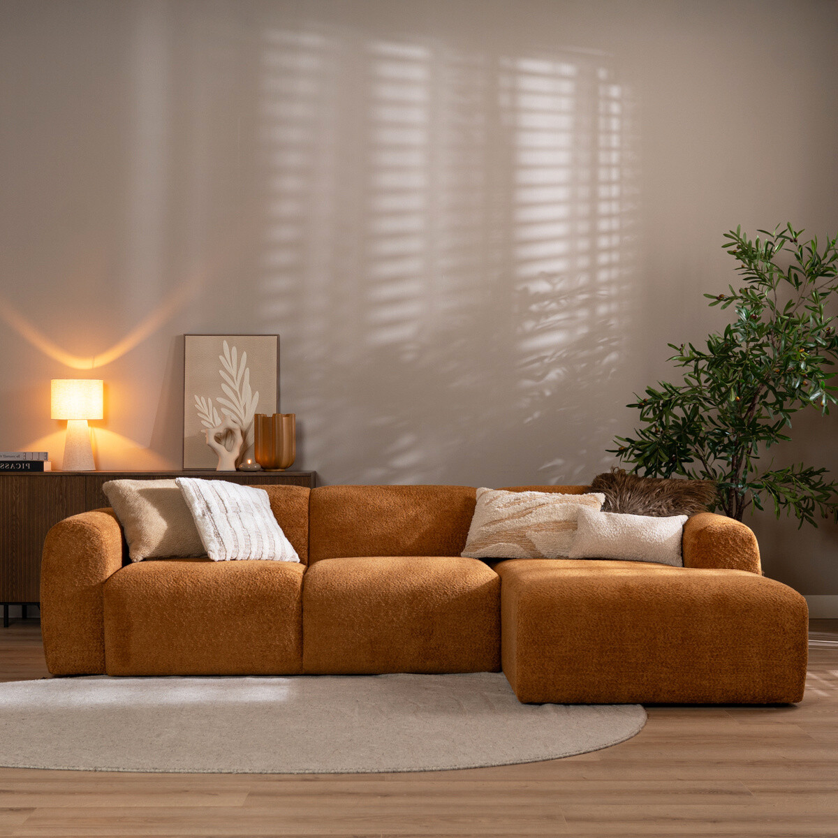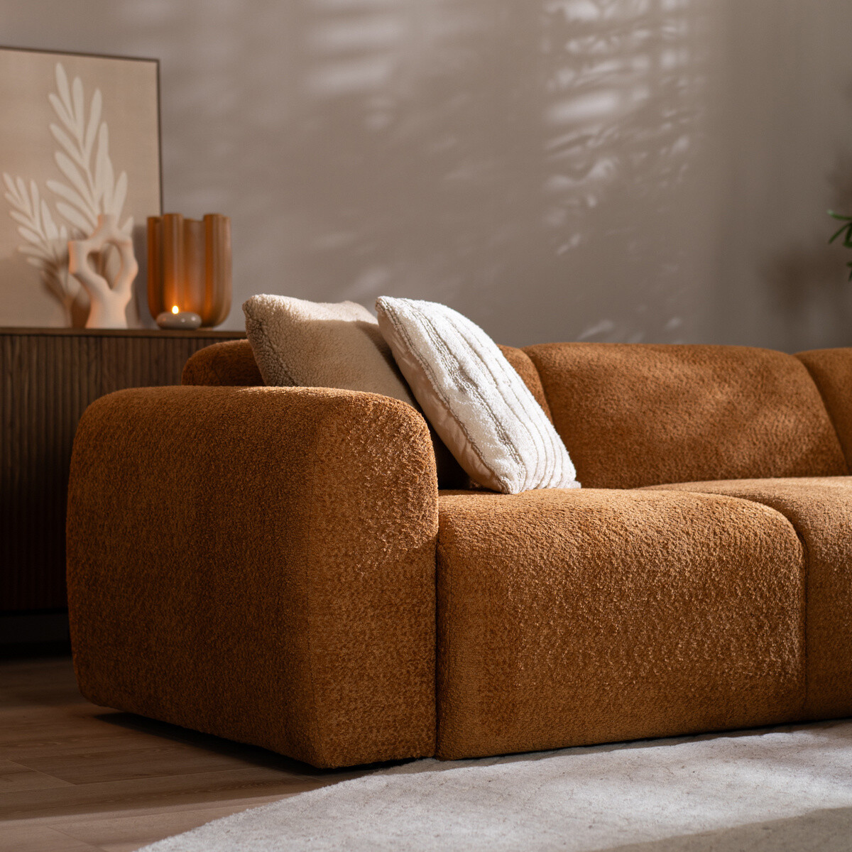 Canapé d’angle droit Maine en tissu bouclé terracotta