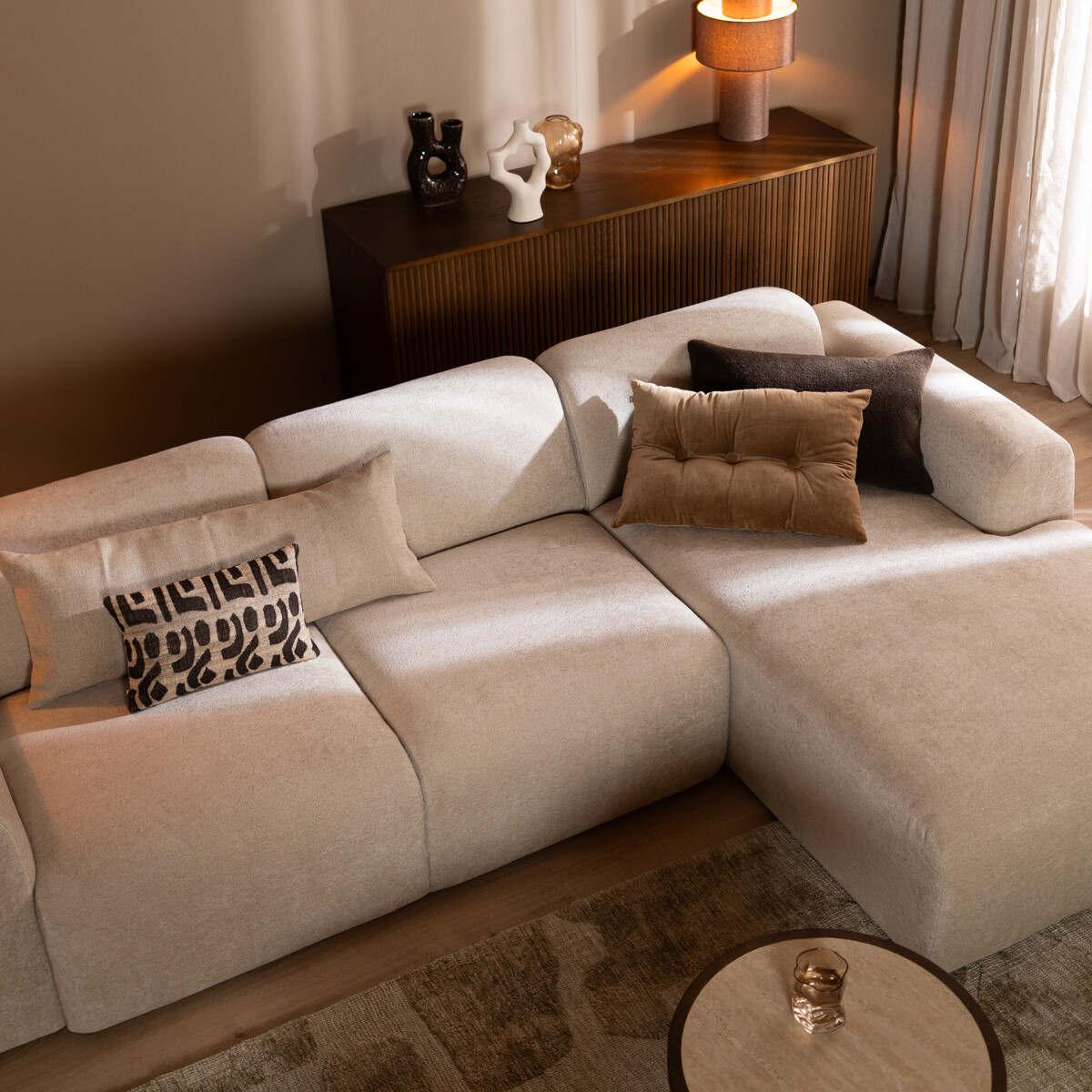 Canapé d’angle Maine : l’équilibre parfait entre style et confort, fabriqué dans un beau tissu chenille.