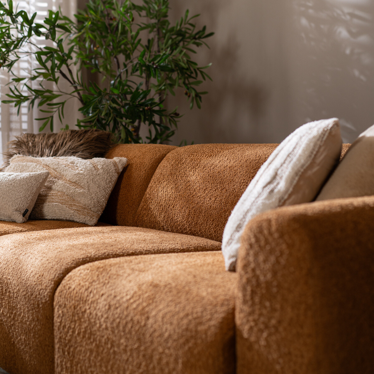 Le canapé d’angle Maine est le parfait équilibre entre style et confort, conçu dans un magnifique tissu bouclé. Grâce à son design polyvalent, le Maine s’intègre facilement dans différents styles d’intérieur. Les accoudoirs doux et arrondis donnent au canapé une allure accueillante. Tandis que les assises larges et entièrement tapissées jusqu’au sol offrent une finition luxueuse et haut de gamme. Ces détails bien pensés rendent le Maine incontournable dans votre salon.