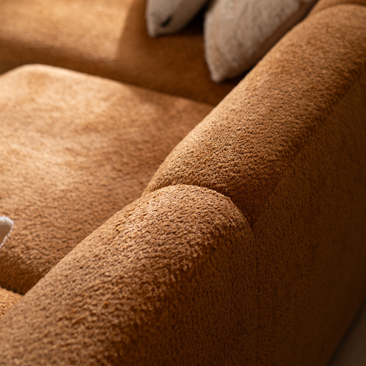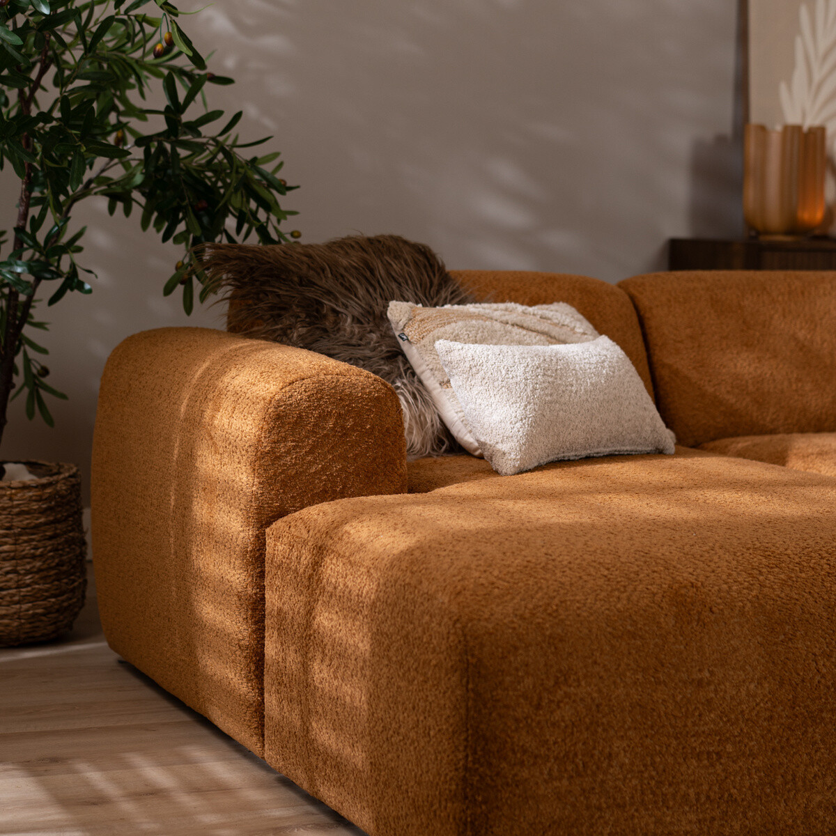Canapé d’angle gauche Maine en tissu bouclé terracotta