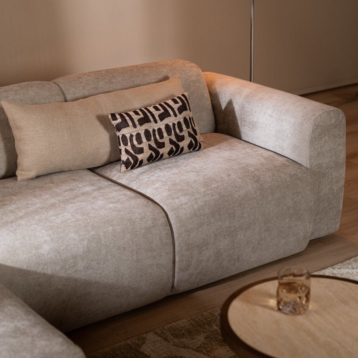 Le canapé d’angle Maine est l’équilibre parfait entre style et confort, conçu dans un magnifique tissu chiné. Grâce à son design polyvalent, le Maine s’intègre facilement dans différents intérieurs. Les accoudoirs doux et arrondis donnent au canapé une allure accueillante. Tandis que les larges assises entièrement tapissées jusqu’au sol assurent une finition luxueuse et de haute qualité. Ces détails réfléchis font du Maine un élément indispensable dans votre salon.