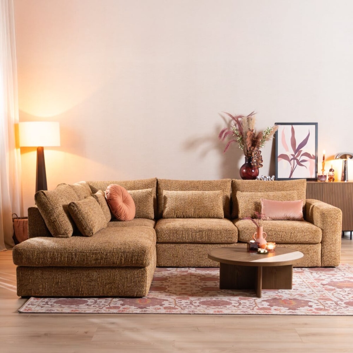 Le canapé d’angle Kyle offre une combinaison parfaite de praticité, de confort et d’esthétique chaleureuse. Ce grand canapé en angle crée immédiatement une atmosphère accueillante dans votre salon et est idéal pour des moments de détente en famille. Facile à entretenir et extrêmement confortable pour s’y affaler après une longue journée.
