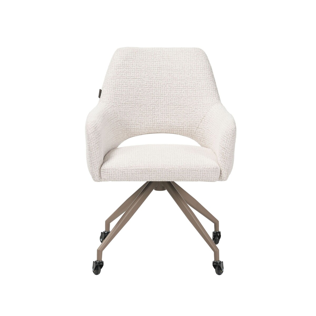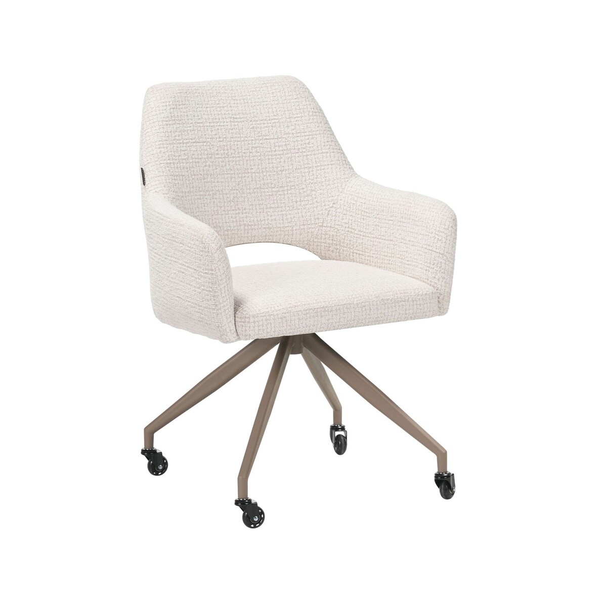 Chaise de salle à manger à roulettes Mona tissu chiné beige