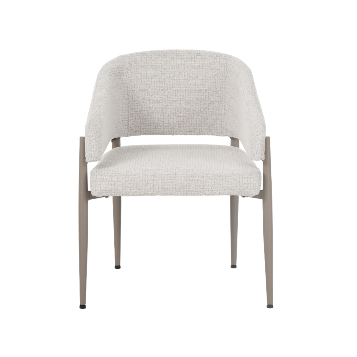 La chaise de salle à manger Armin, avec son cadre couleur taupe combiné au tissu chiné, dégage une allure exclusive et élégante. Ce ton sur ton s’intègre parfaitement dans un intérieur de style scandinave.