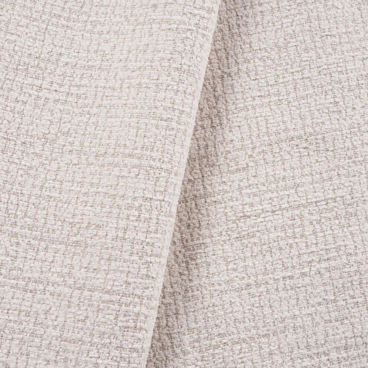 La chaise est revêtue d’un tissu chiné composé à 100 % de polyester. Le tissu clair peut être sensible aux taches, mais il est facile à entretenir avec un kit d’entretien textile.