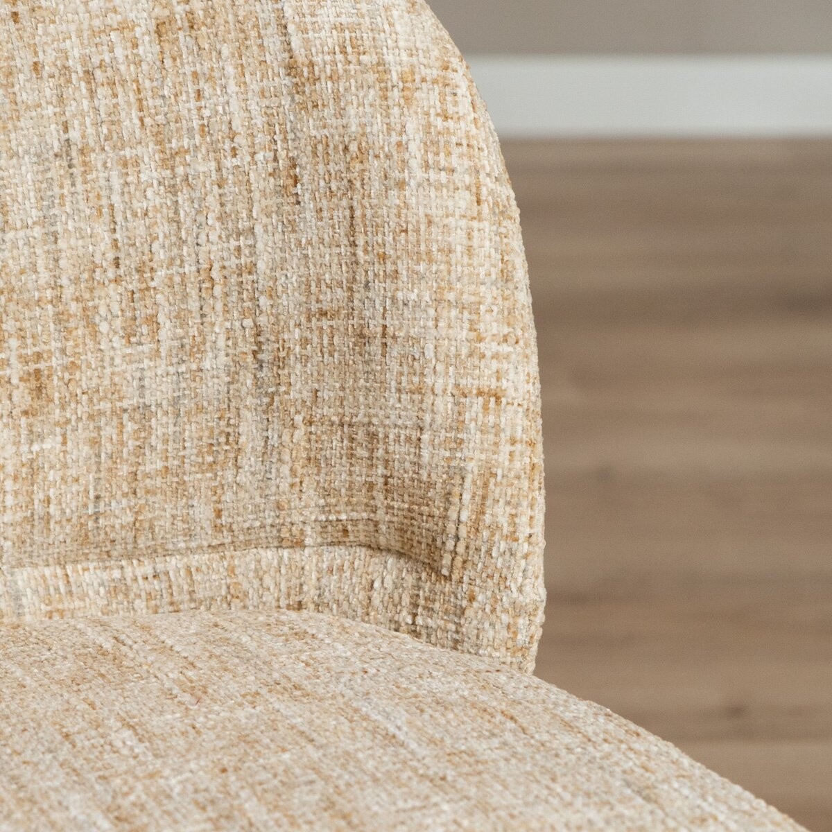 La Charlie est recouverte d’un tissu en chenille, un textile d’ameublement haut de gamme, tissé grossièrement, qui allie robustesse et confort. La structure solide est douce et veloutée au toucher, tandis que les nuances subtiles de couleur cuivre lui confèrent un caractère vivant et contemporain. Grâce à ses propriétés déperlantes et anti-taches, la chaise reste non seulement belle, mais aussi pratique : idéale pour de longs dîners, des apéritifs conviviaux ou même un usage professionnel intensif.