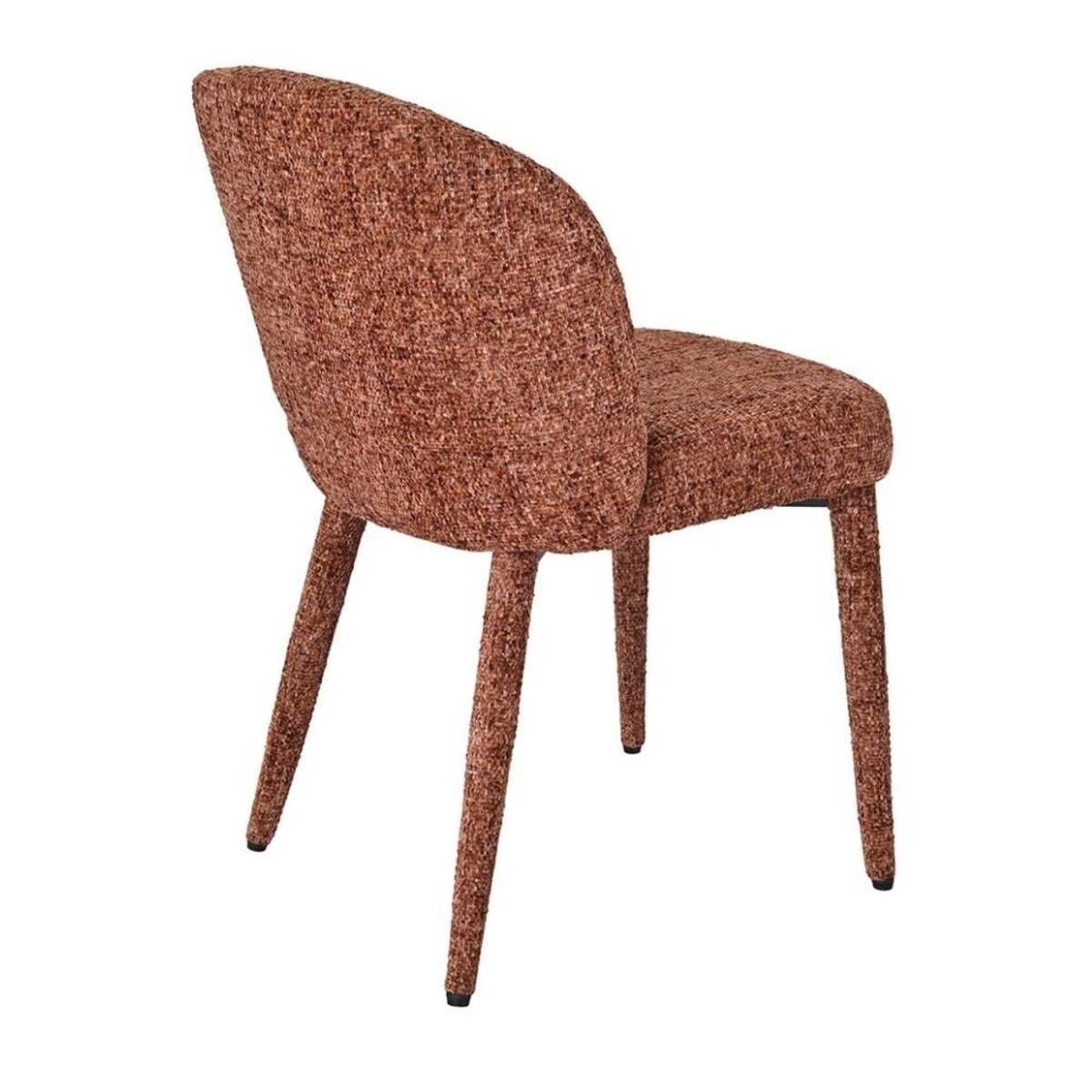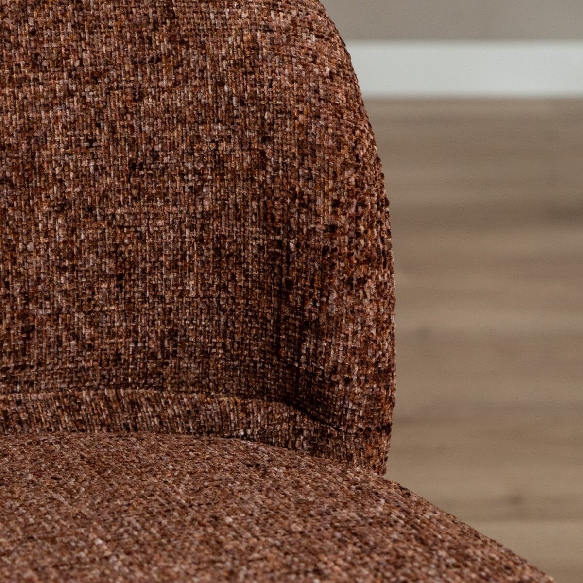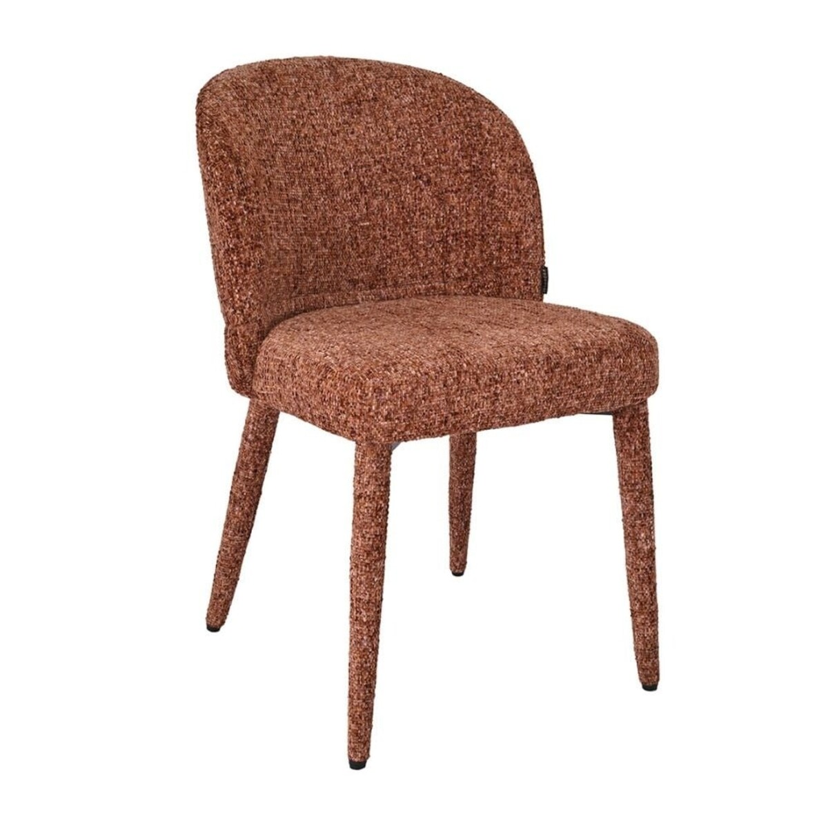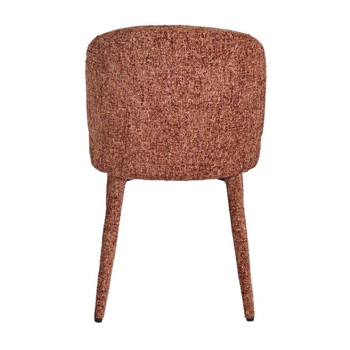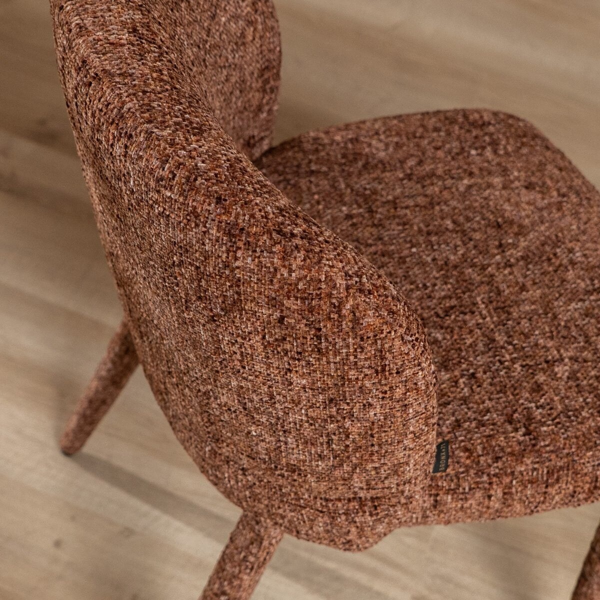 La Charlie est recouverte d’un tissu en chenille, un textile d’ameublement haut de gamme, tissé grossièrement, qui allie robustesse et confort. La structure solide est douce et veloutée au toucher, tandis que les nuances subtiles de couleur cuivre lui confèrent un caractère vivant et contemporain. Grâce à ses propriétés déperlantes et anti-taches, la chaise reste non seulement belle, mais aussi pratique : idéale pour de longs dîners, des apéritifs conviviaux ou même un usage professionnel intensif.