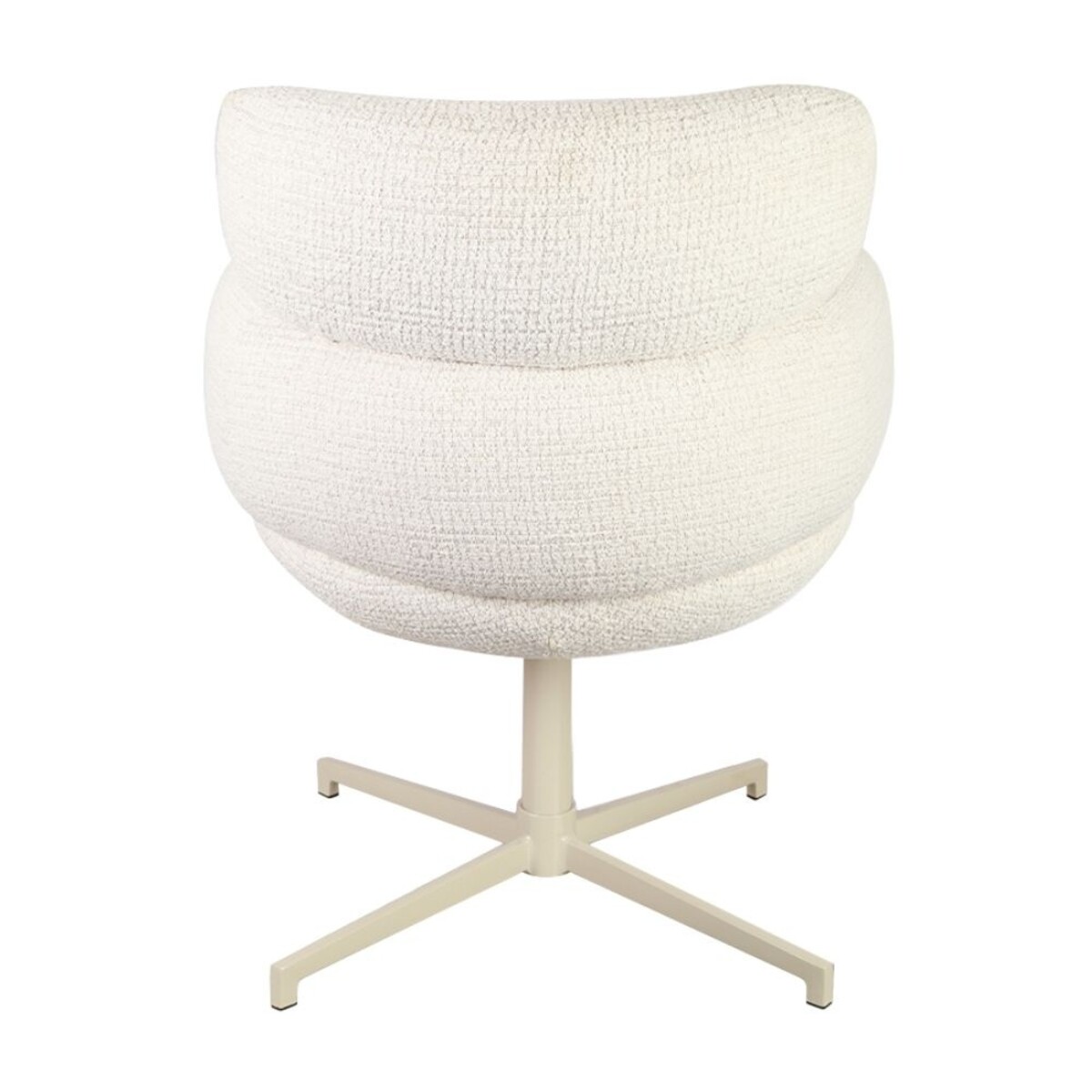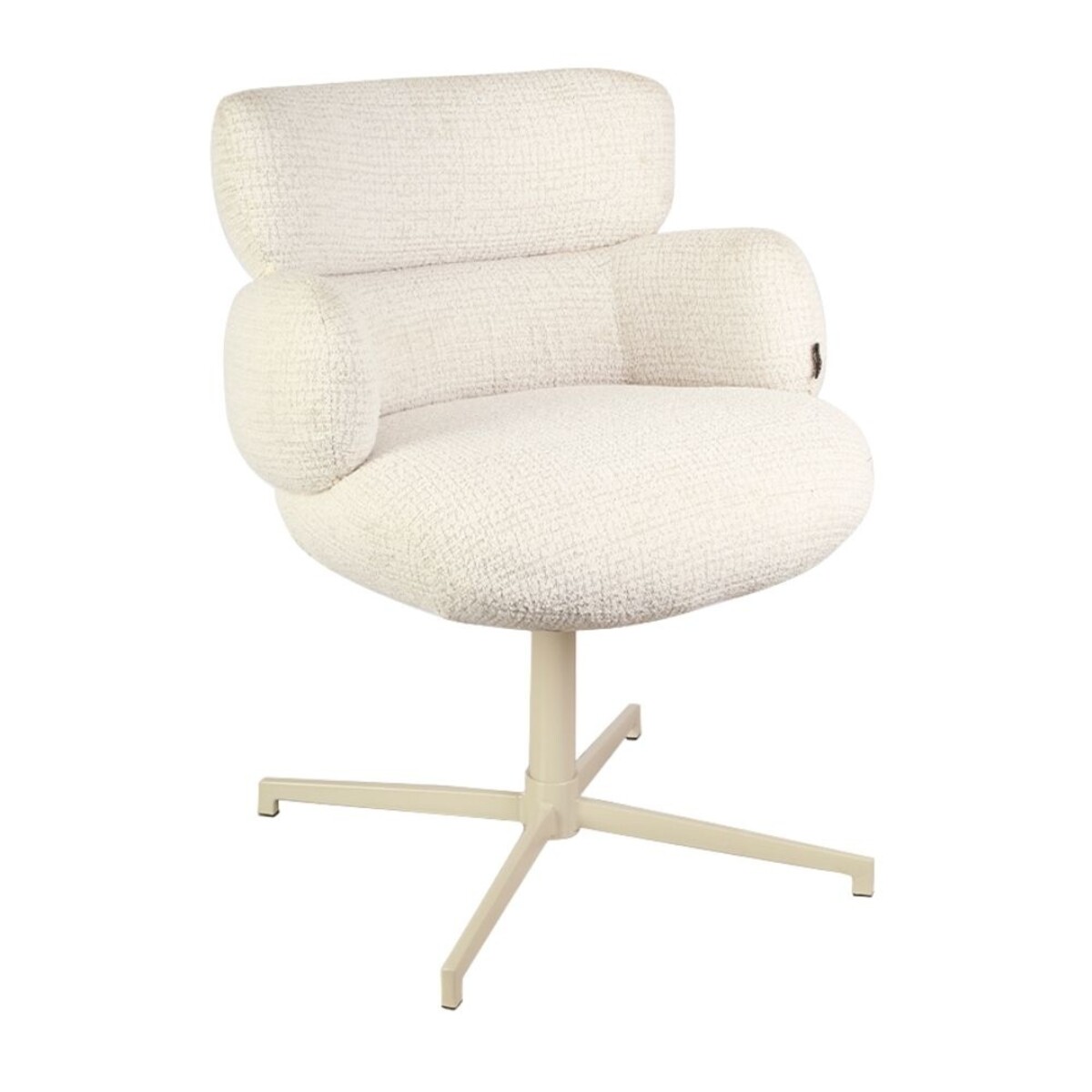 La chaise Coco peut pivoter à 180 degrés. L’assise et le dossier rembourrés apportent une touche raffinée, tandis que les formes arrondies et les accoudoirs doux offrent un soutien supplémentaire. Cela fait de Coco le choix idéal pour de longs dîners ou des réunions où le confort est primordial.Le piètement en métal couleur taupe confère à la chaise une allure moderne tout en assurant stabilité et solidité. Grâce à son design élégant, Coco s’intègre aisément aussi bien dans des intérieurs contemporains que dans des aménagements de projets sophistiqués.