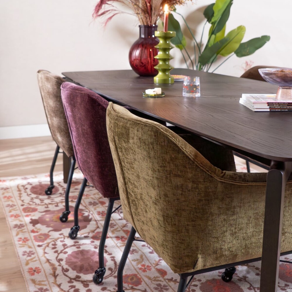 Ce qui rend l’Enzo particulièrement spécial, ce sont les ressorts Nosag dans l’assise, offrant un confort d’assise exceptionnel. La chaise est recouverte d’un chenille durable de couleur olive, parfaite pour un intérieur Urban. L’assise spacieuse offre suffisamment de place pour un dîner détendu.