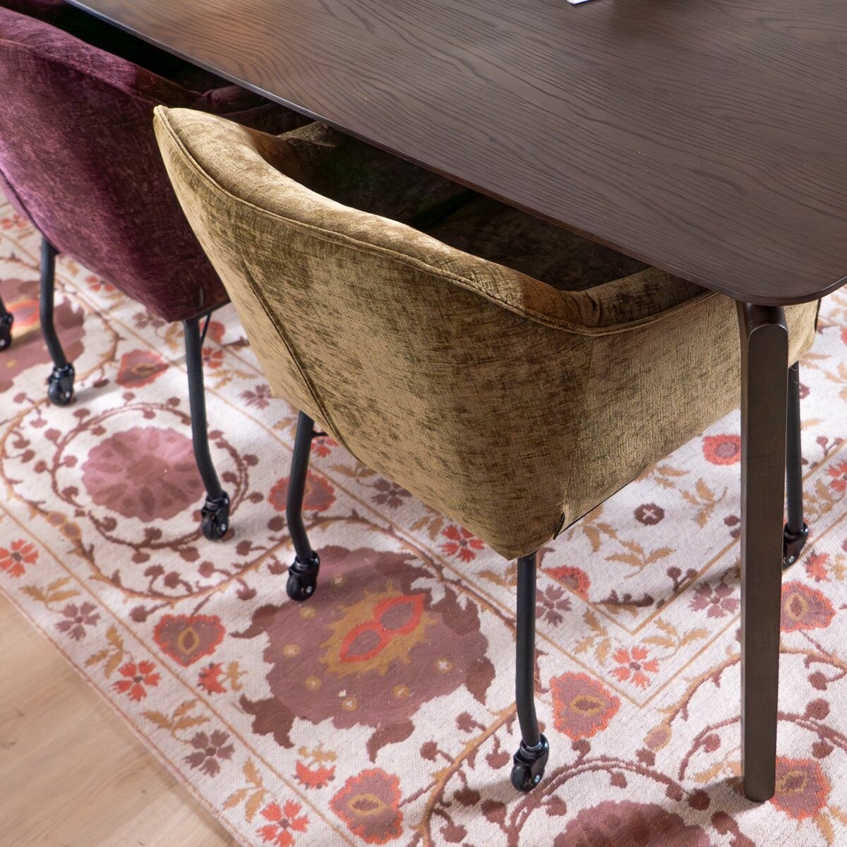 Chaise de salle à manger avec roulettes Enzo chenille olive