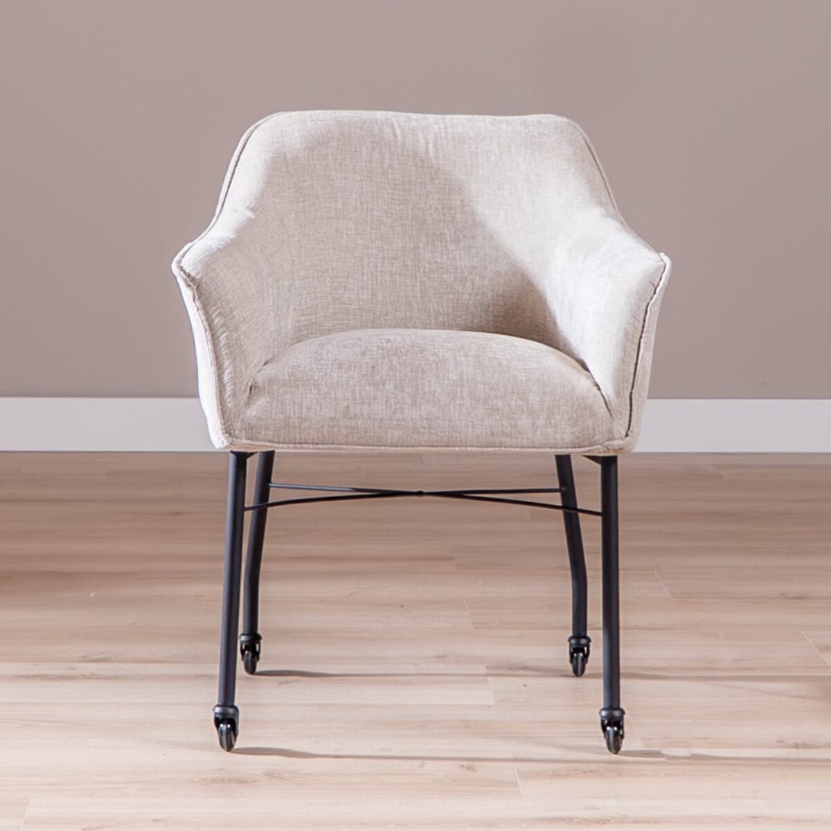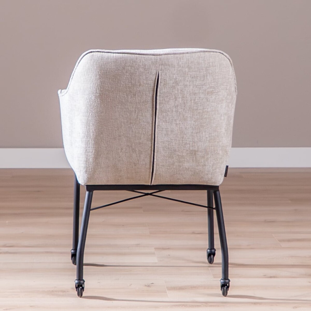 Chaise de salle à manger avec roulettes Enzo chenille sand