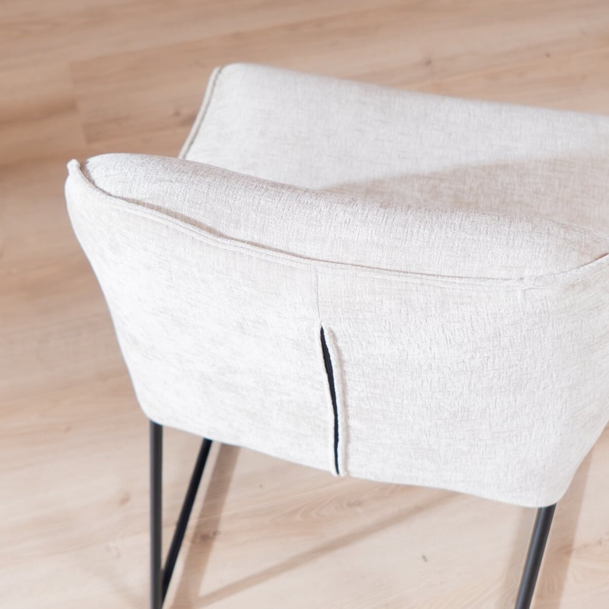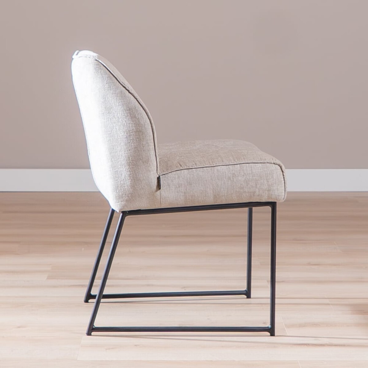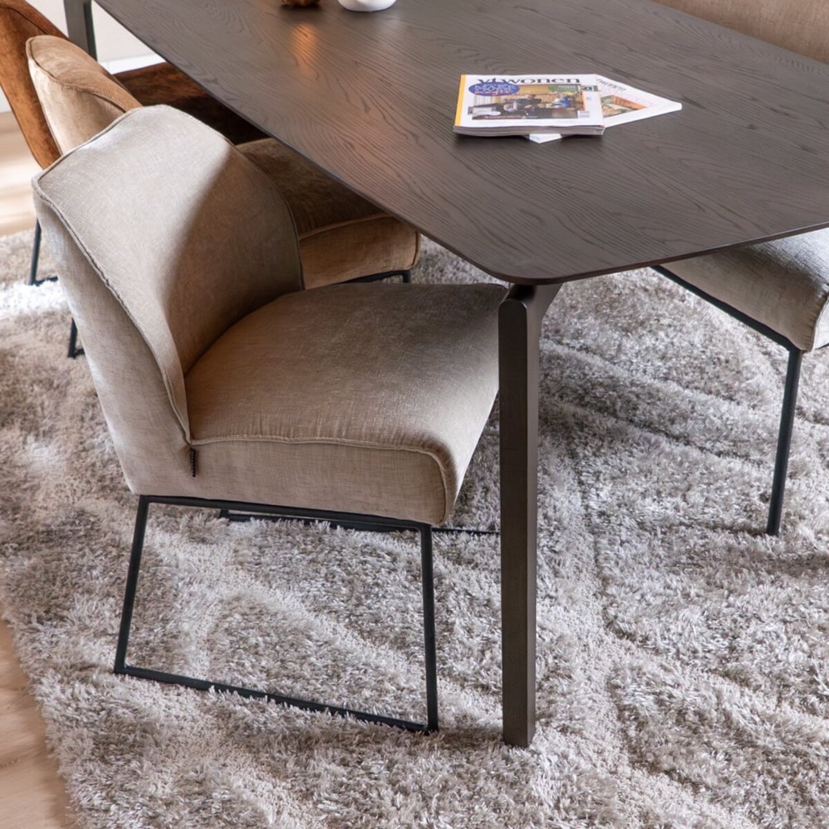 La chaise est recouverte du tissu chenille doux Eddy dans une teinte sable, qui s’intègre parfaitement dans un intérieur scandinave. Grâce aux suspensions nosag intégrées dans l’assise, vous bénéficiez d’un confort d’assise supplémentaire, idéal pour de longues soirées à table.