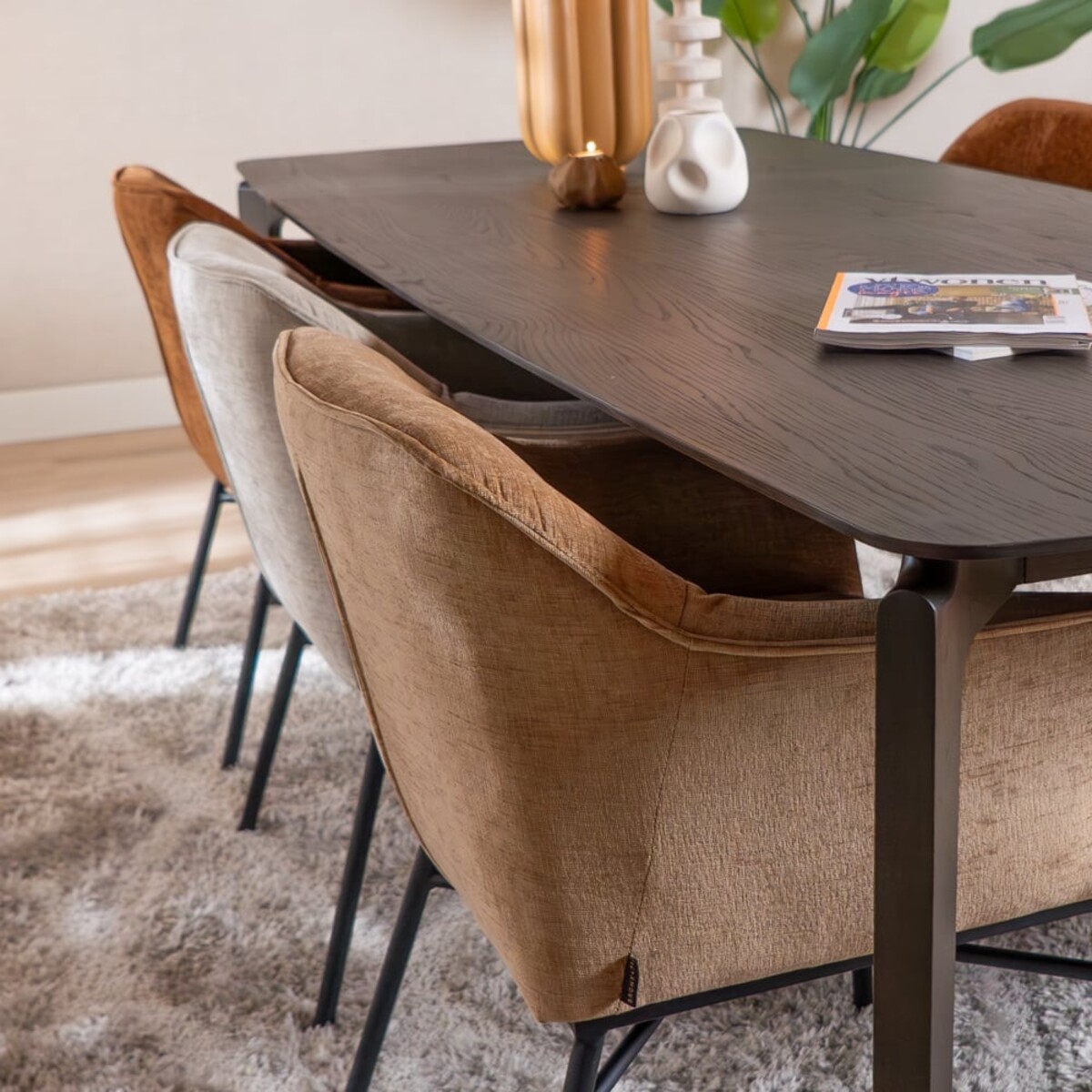 La chaise de salle à manger Nubo en chenille peach élève le confort à votre table à un niveau supérieur. La combinaison d’une base robuste et du tissu chenille doux rend cette chaise non seulement très confortable, mais aussi parfaitement adaptée à un intérieur scandinave. Grâce à sa teinte claire, elle s’intègre harmonieusement dans une ambiance apaisante et apporte à votre espace repas une allure épurée et moderne.