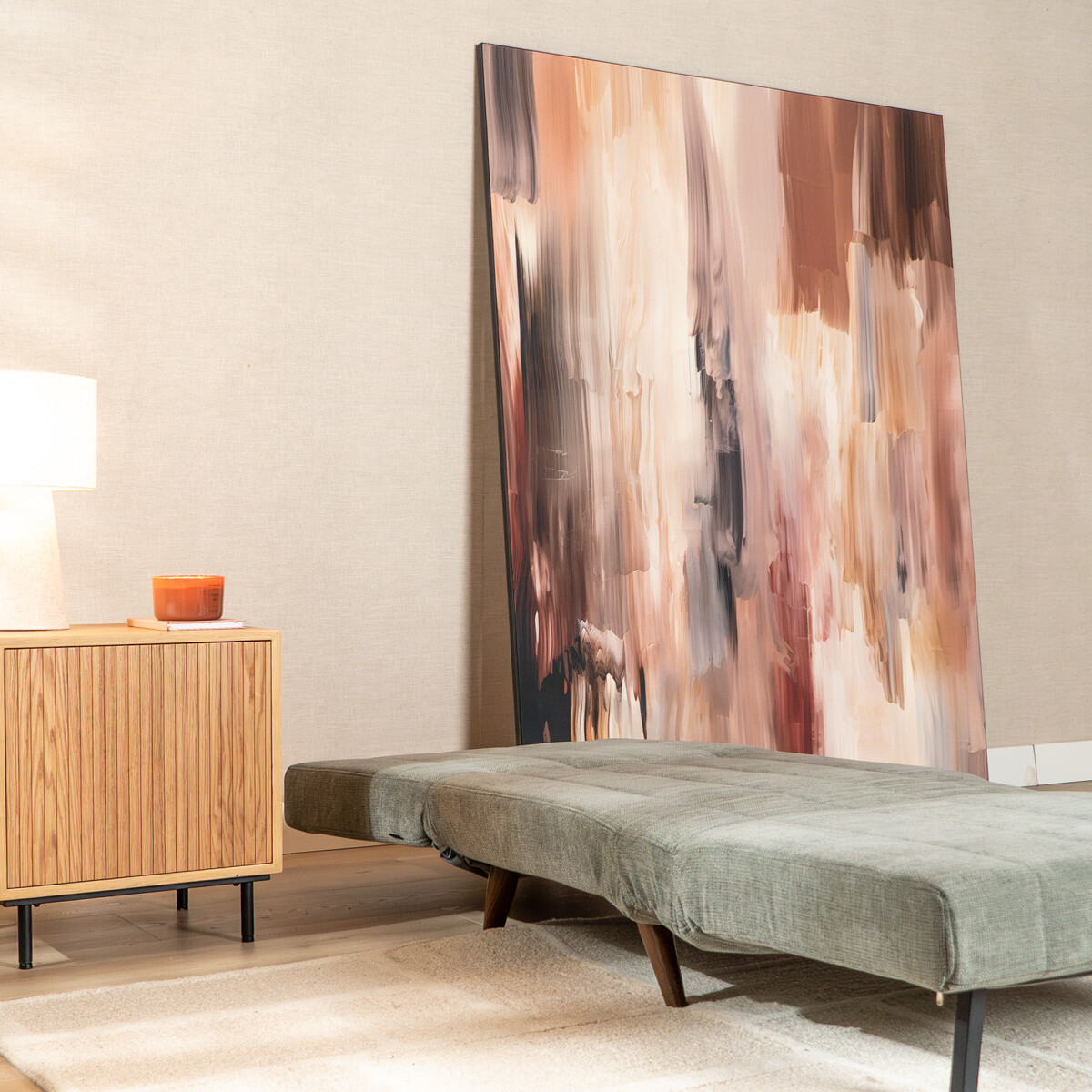 Le canapé-lit est fabriqué à partir d’un tissu 100 % recyclé. Ce tissu polyester durable est fabriqué à partir de bouteilles en plastique, ce qui le rend très respectueux de l’environnement. Le tissu est tout aussi résistant, souple et durable que le polyester classique. De plus, il est légèrement déperlant, ce qui facilite grandement l’entretien.