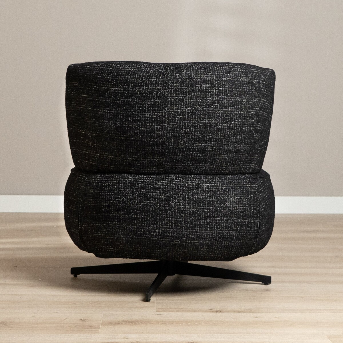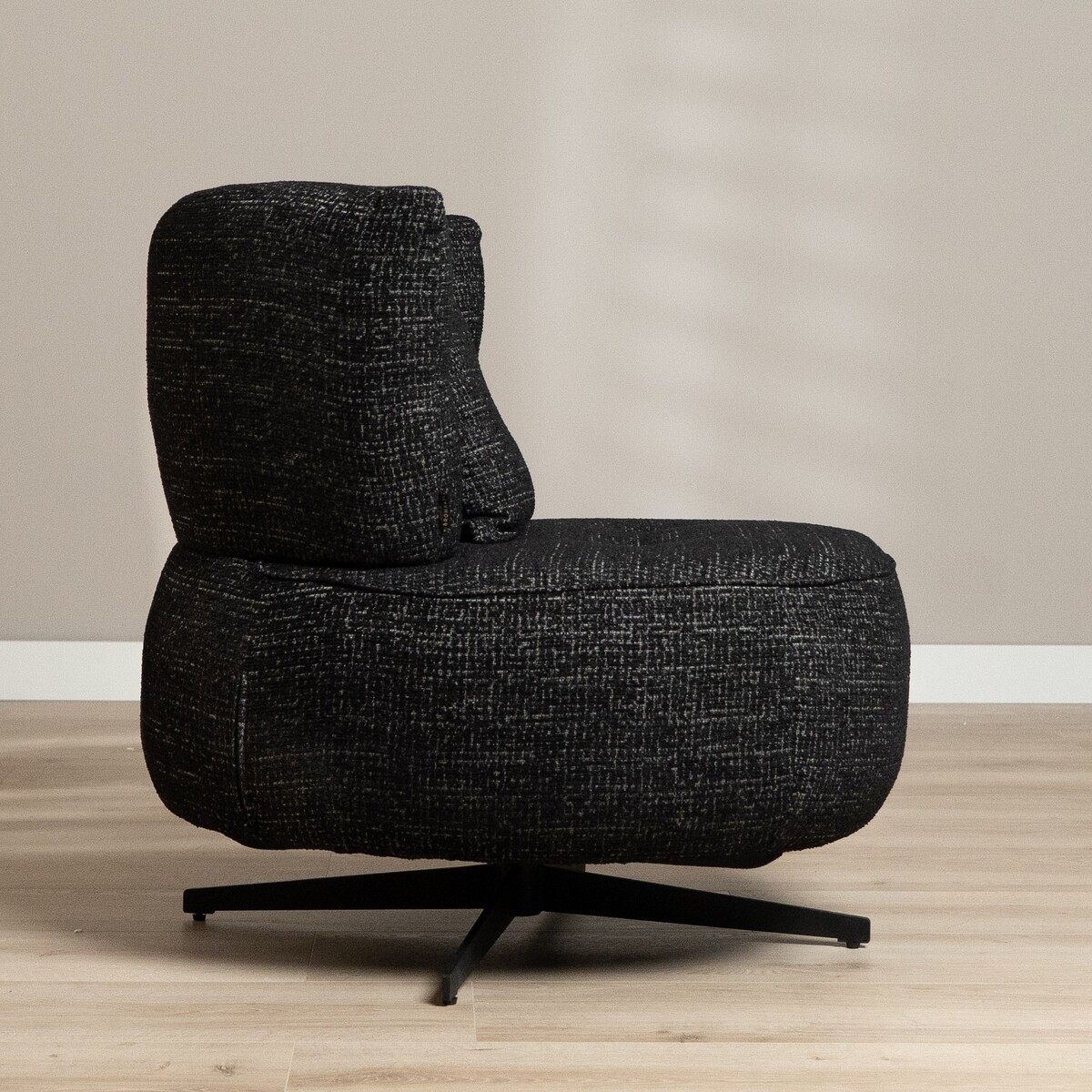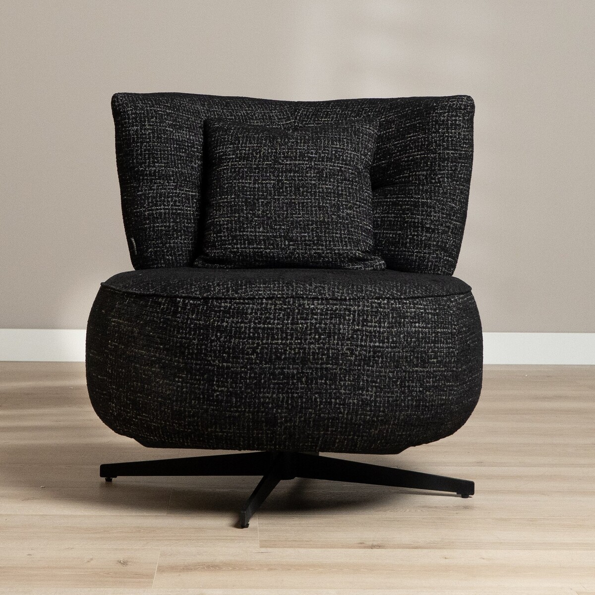 Un fauteuil moderne offrant une assise généreuse, une apparence luxueuse et un confort optimal. Grâce à son tissu chiné noir et à sa structure élégante en métal, Fallon s’intègre parfaitement à tout intérieur.