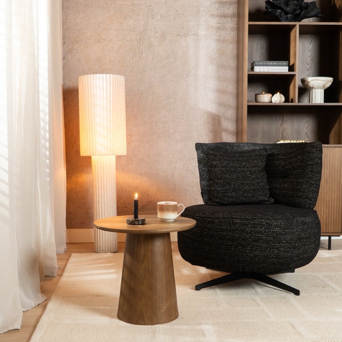 Matériau : Fallon est revêtu d’un tissu chiné beige, tissé avec deux fils de couleurs subtilement mélangés. Cela crée un effet à carreaux raffiné et confère au fauteuil une apparence luxueuse et élégante. Grâce à sa couleur neutre, le fauteuil est facile à assortir et convient aussi bien à un intérieur moderne, industriel ou intemporel. Le tissu n’étant pas déperlant, nous recommandons l’utilisation d’un kit d’entretien textile pour une protection durable et pour préserver son bel aspect.