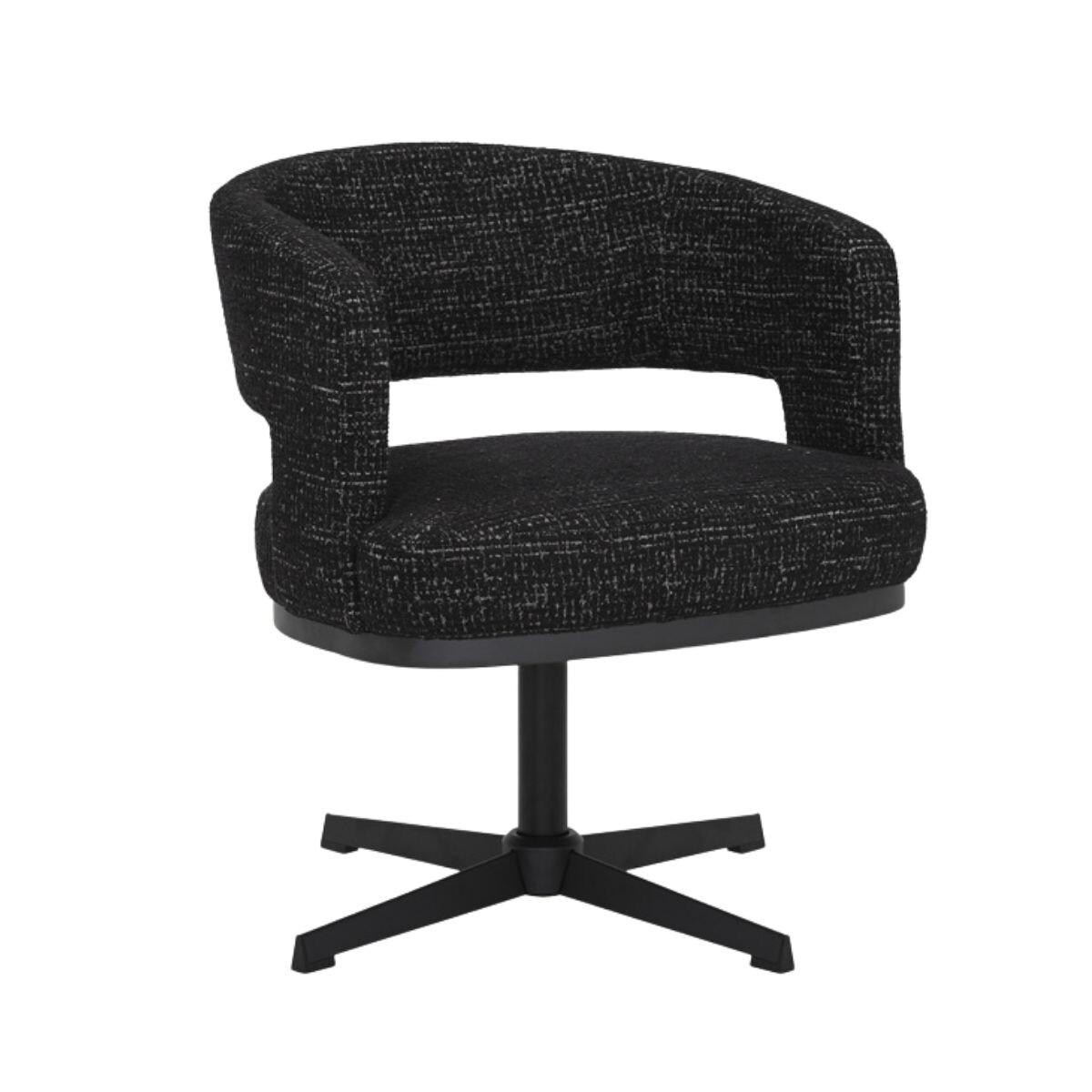 Fauteuil pivotant Gino en tissu chiné noir