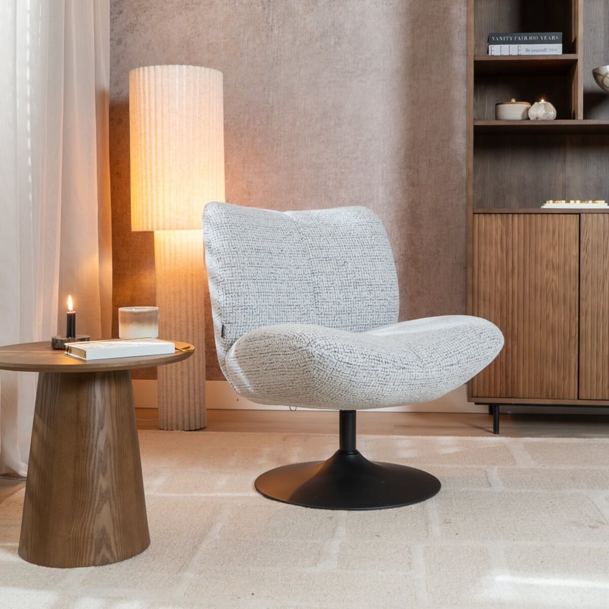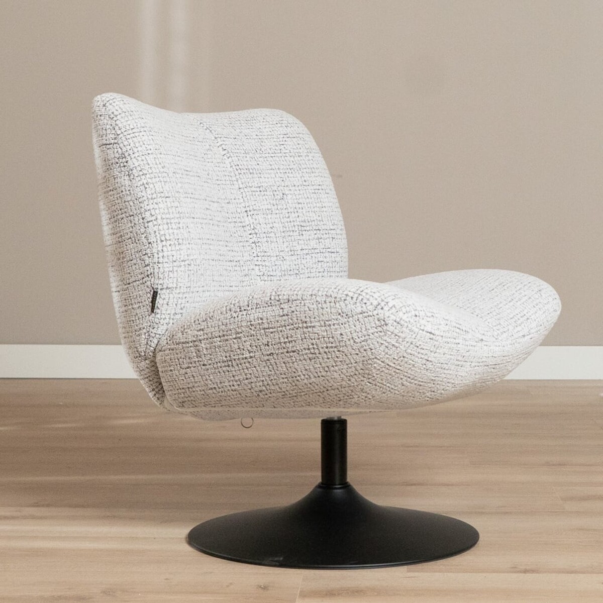 Fauteuil pivotant Moira en tissu chiné off-white/ noir
