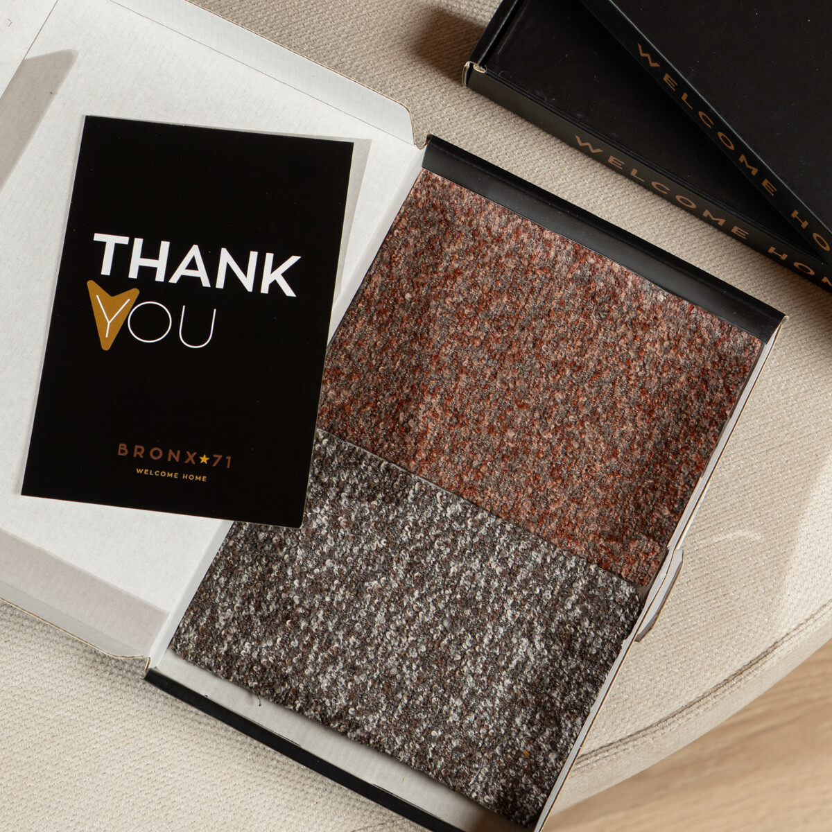 Le kit d’échantillons de tissu bouclé Trivello est un tissu doux décliné en deux coloris : brun/gris et rouge/rose. En observant d’abord le tissu et la couleur chez vous, vous pouvez vous assurer qu’ils s’accordent parfaitement avec votre intérieur. Vous pouvez ainsi voir le tissu à la lumière naturelle de votre maison et vérifier s’il se marie bien avec le reste de votre mobilier. Cela vous évite de devoir éventuellement retourner un meuble complet.