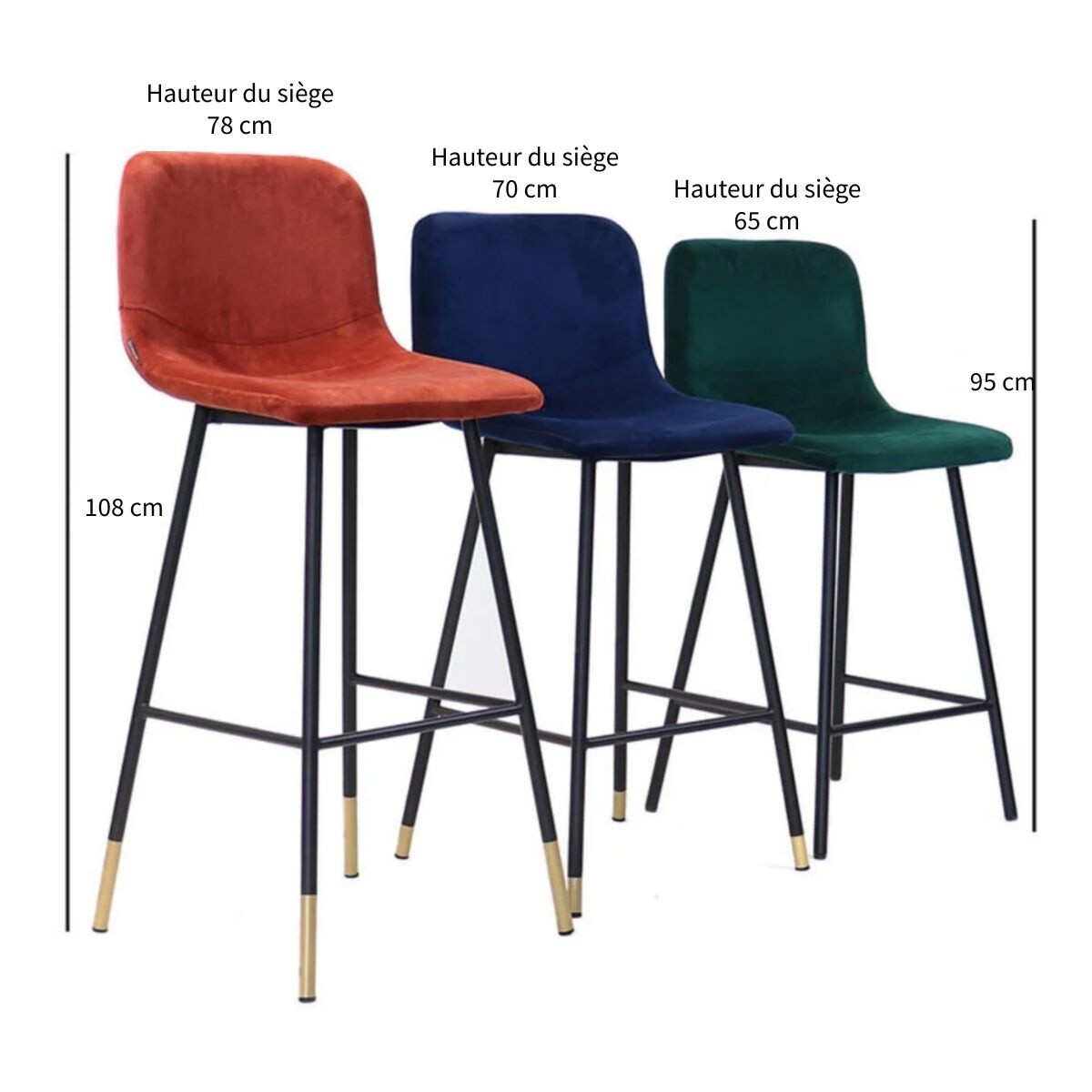 Attention: vérifiez toujours la hauteur de votre table haute. Nous proposons des tabourets de différentes hauteurs. Pour un confort optimal, nous recommandons un espace de 20 à 25 cm entre la hauteur d’assise et le dessous du plateau. Avec une hauteur d’assise réglable de 70 à 78 cm, ces pieds conviennent aux plateaux d’environ 85 à 103 cm de haut.