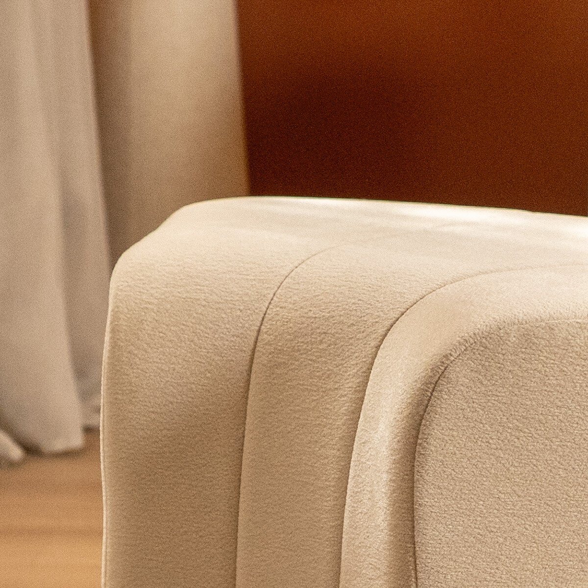Le pouf est recouvert d’un tissu durable, déperlant et anti-taches. Grâce à ces propriétés pratiques, l’angle Seth est facile à nettoyer et reste beau longtemps, même en cas d’utilisation intensive. Le tissu est doux au toucher et donne au pouf une allure raffinée.
