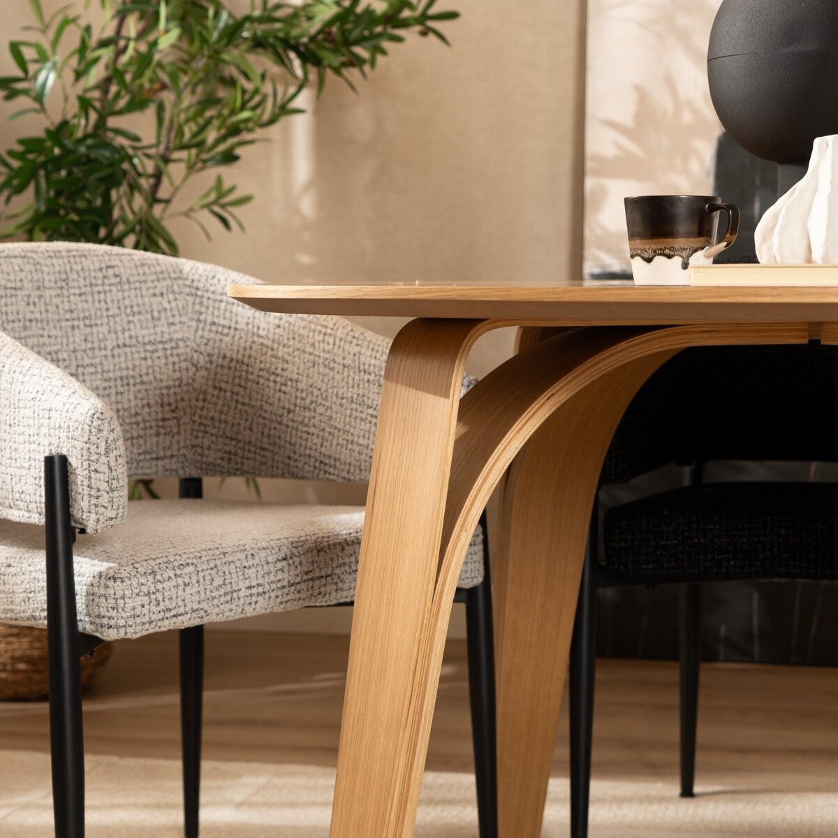 Le plateau de la table est fabriqué en MDF recouvert d’un placage de chêne de qualité, qui ne se déforme pas et conserve sa stabilité dans le temps. Le piètement en contreplaqué avec placage chêne assure solidité et élégance. Recevant confortablement 4 personnes, la Bowie est idéale aussi bien pour les repas quotidiens que pour accueillir des clients ou animer un atelier professionnel. Sa teinte claire et son style épuré font merveille dans un intérieur nordique, Japandi ou minimaliste. Pour un montage optimal, deux personnes sont recommandées.