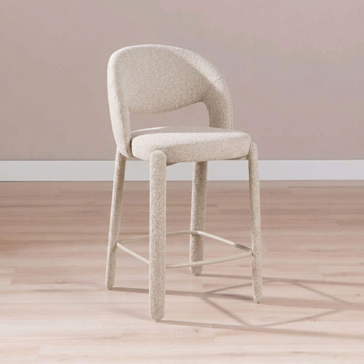Le tabouret de bar est recouvert d’un tissu bouclé de haute qualité, mêlé avec différents fils de couleur, offrant ainsi une texture douce et un style contemporain. Sa structure entièrement habillée procure un effet harmonieux et raffiné. Grâce à l’ouverture sous le dossier, l’assise reste propre plus longtemps et s’entretient facilement. L’absence d’accoudoirs rend ce tabouret peu encombrant, parfait pour installer plusieurs assises côte à côte. Parfaitement assorti avec les chaises ou la banquette de la même gamme. La distance idéale entre l’assise et le dessous du plateau de table est de 20 à 25 cm pour un confort optimal.
