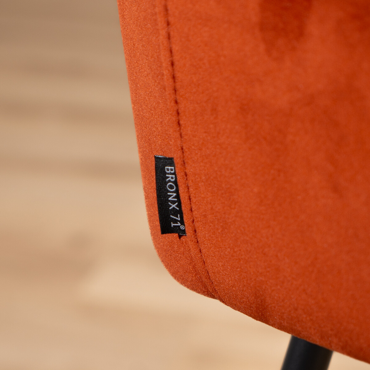Le tabouret est fait de velours. Ce tissu est connu pour son aspect luxueux et brillant. Le tissu a un score Martindale de 70 000, ce qui signifie qu'il est très durable ! En outre, le tissu en velours est hydrofuge. Vous n'avez donc pas à vous inquiéter si vous faites tomber accidentellement votre boisson sur le tabouret.